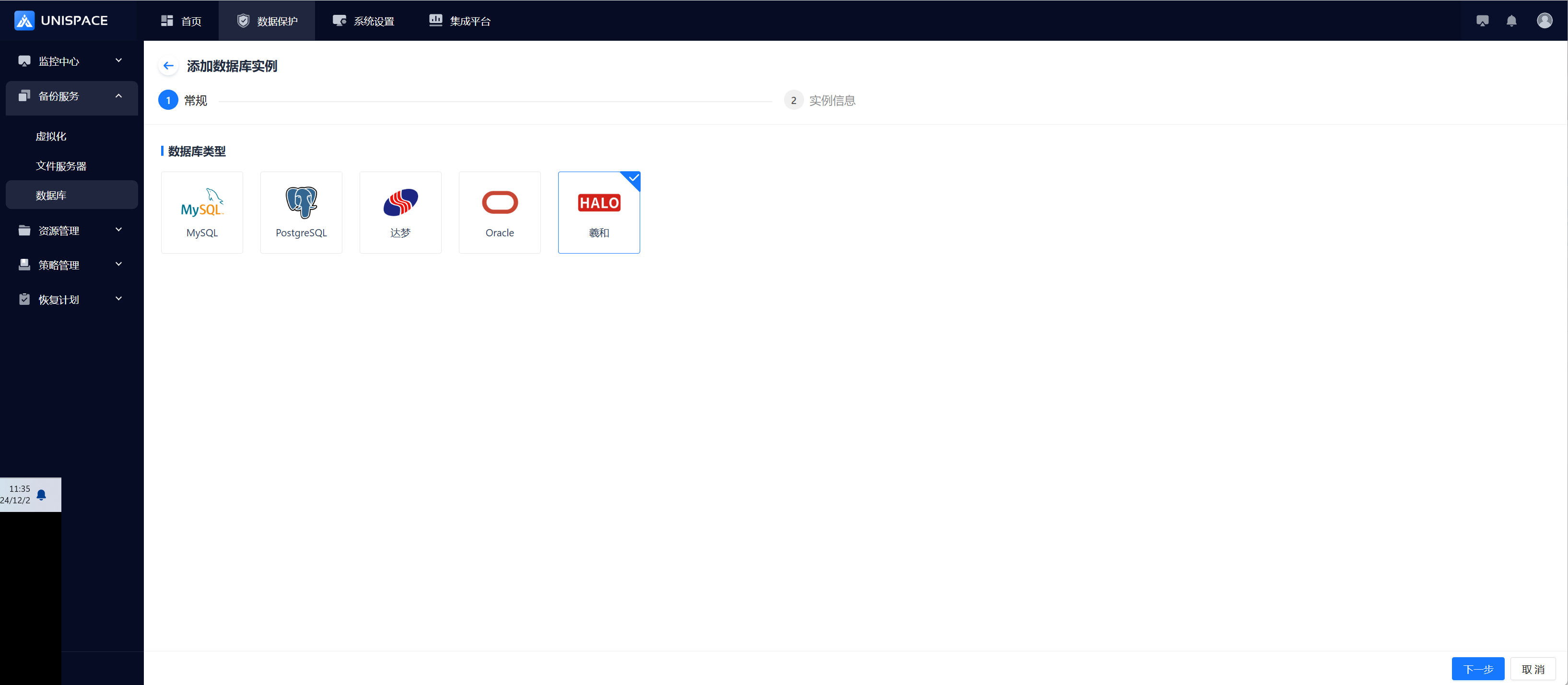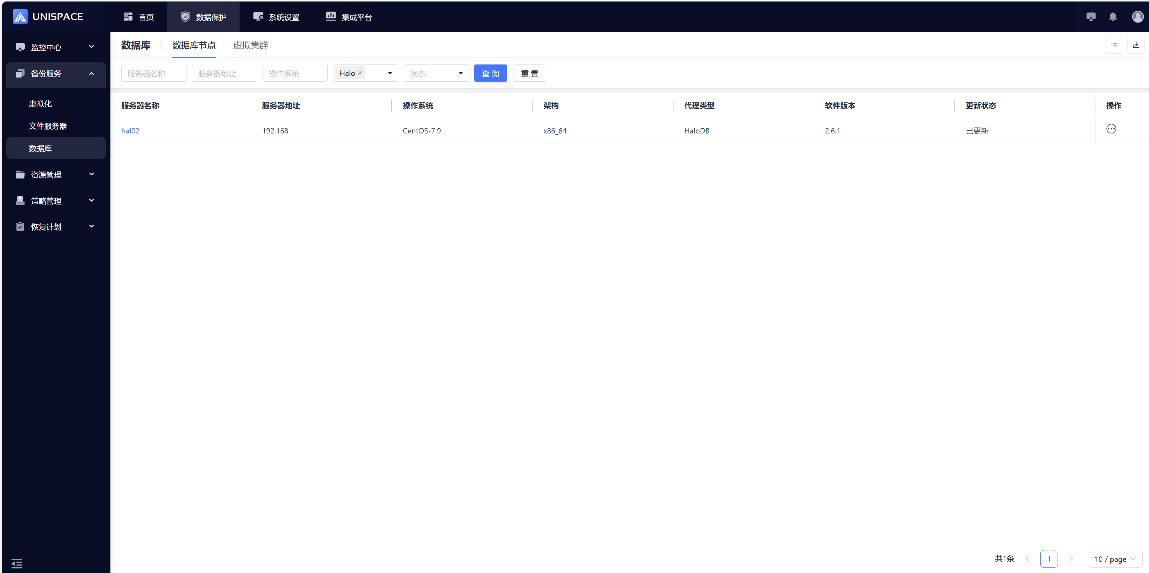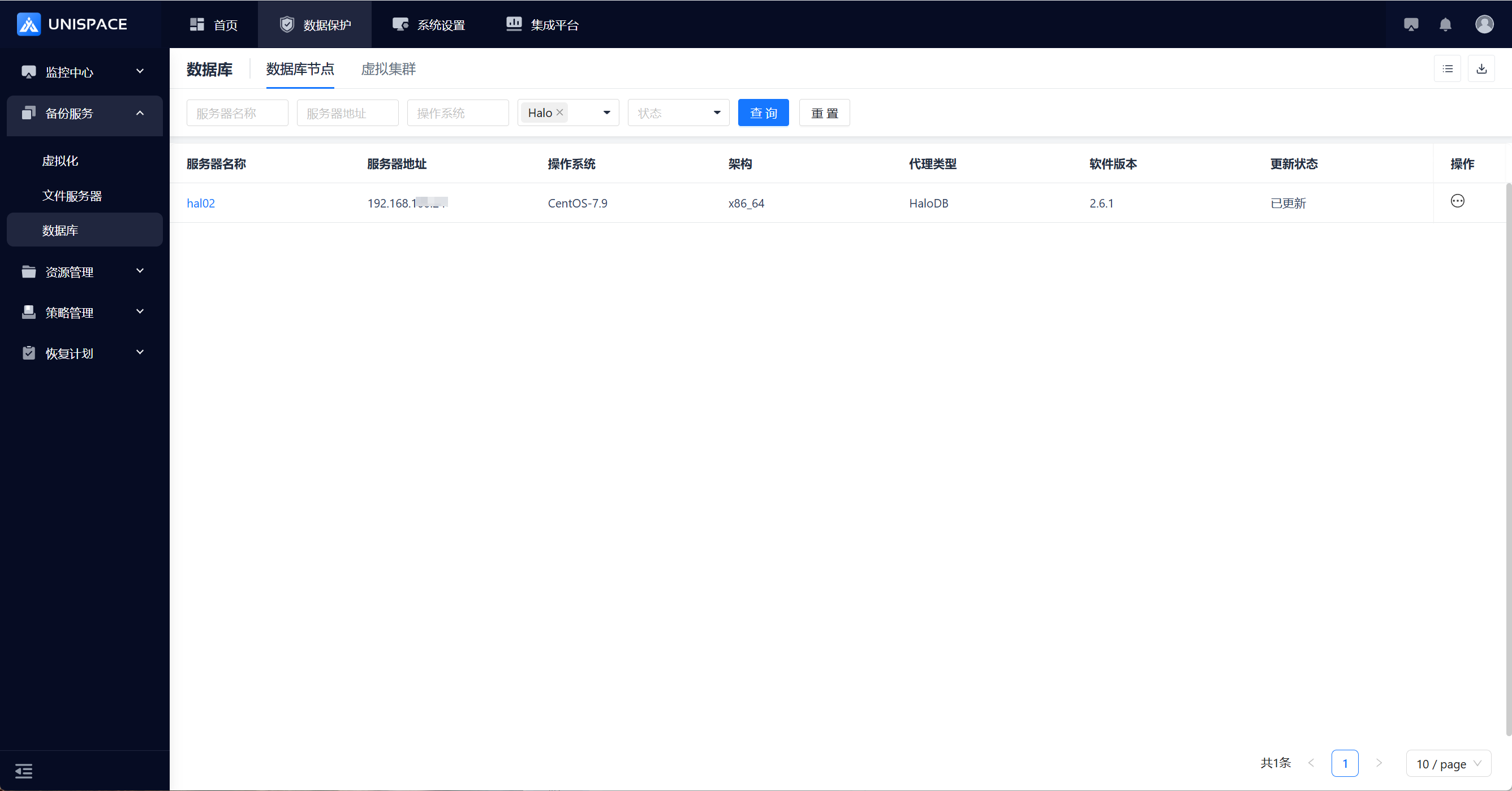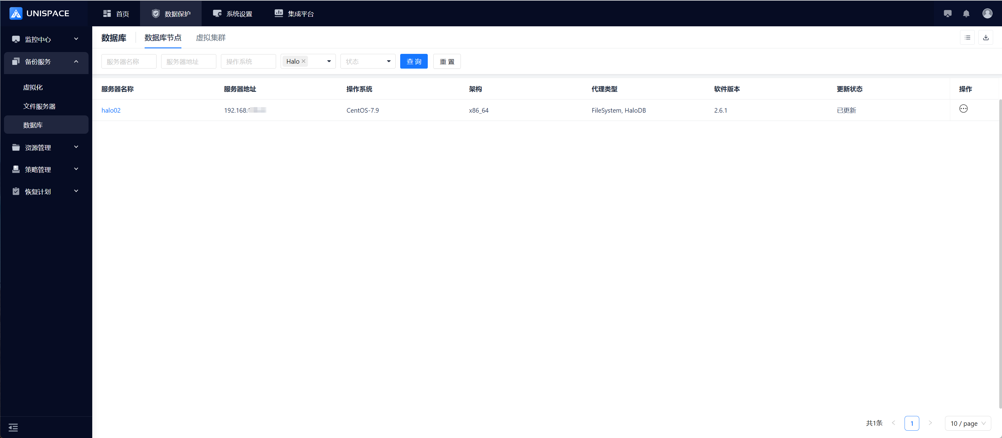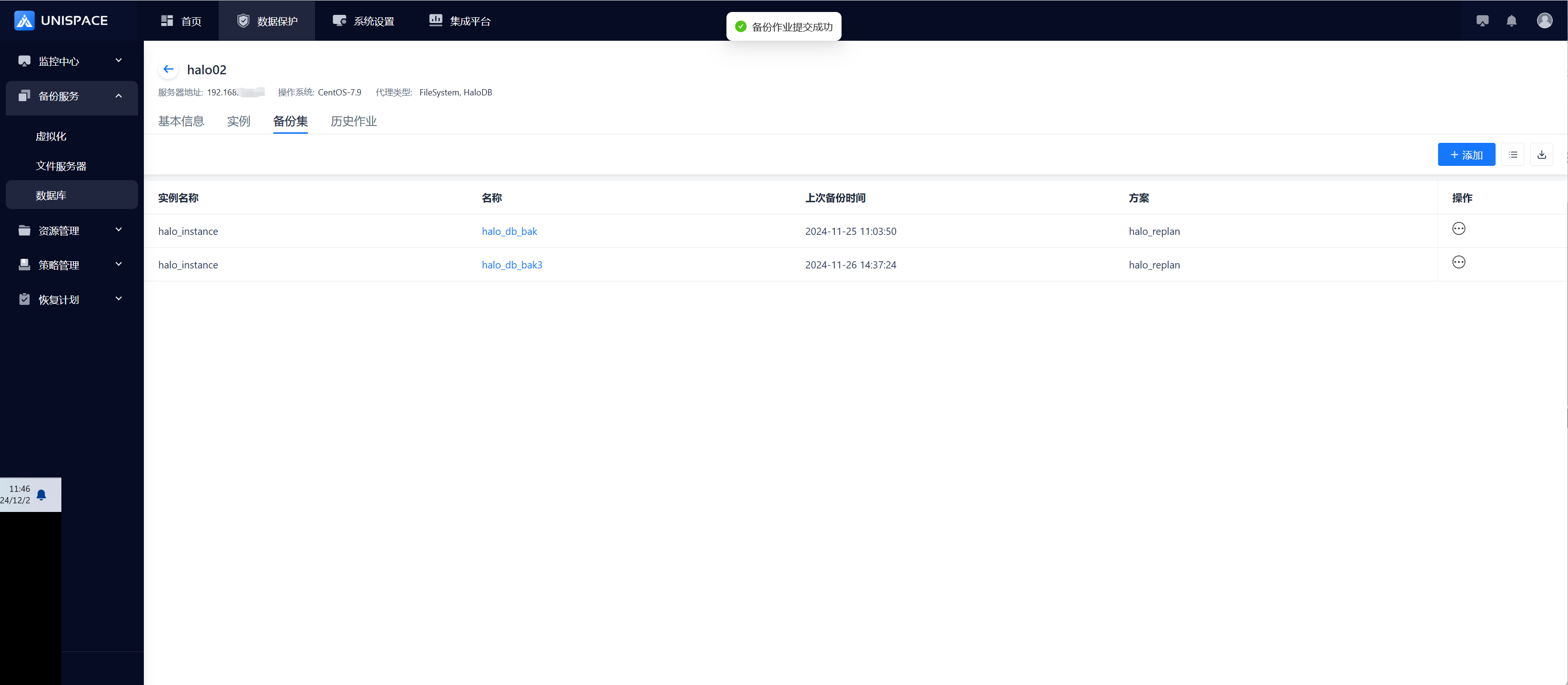 Step 1: Click Backup Service - Database from the system menu, then select the "Server Name" to enter the database instance page.