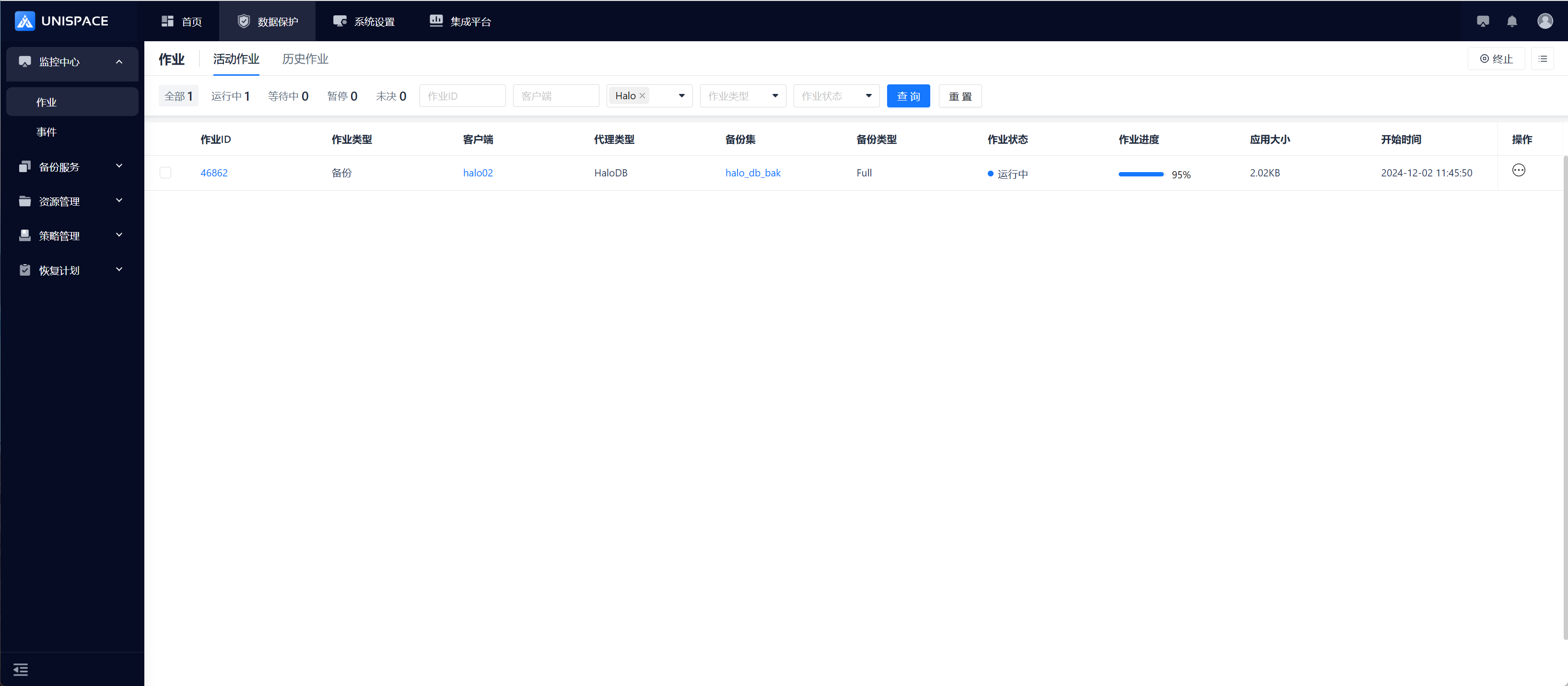 Step 4: After the backup job starts successfully, go to Monitoring Center - Jobs - Active Jobs to view the backup job.