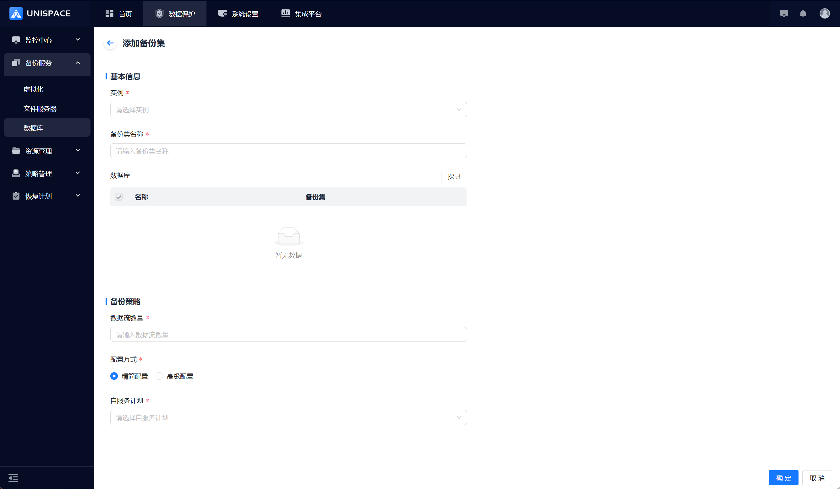 Step 1: Click Backup Service - Database - Server Name - Instance from the system menu.