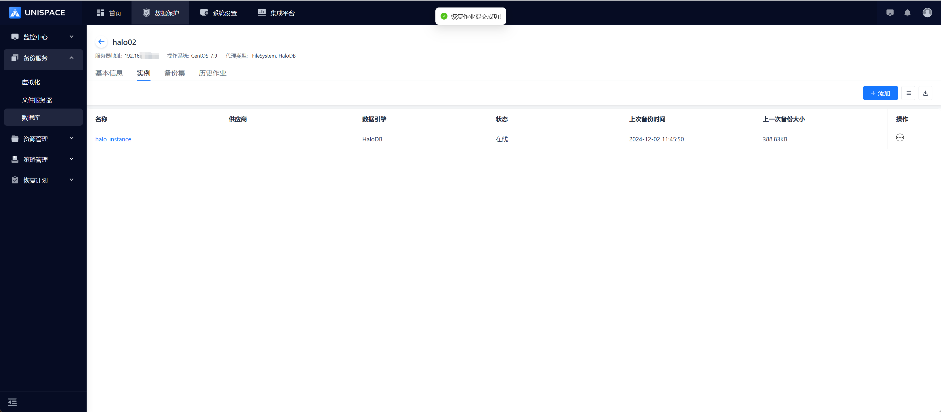 | Target Host | Default is Cross-Machine Recovery. Select the target host from the list of client nodes with the Halo service installed | Supports cross-machine; if source machine is selected, target host is grayed out; recover to disk |