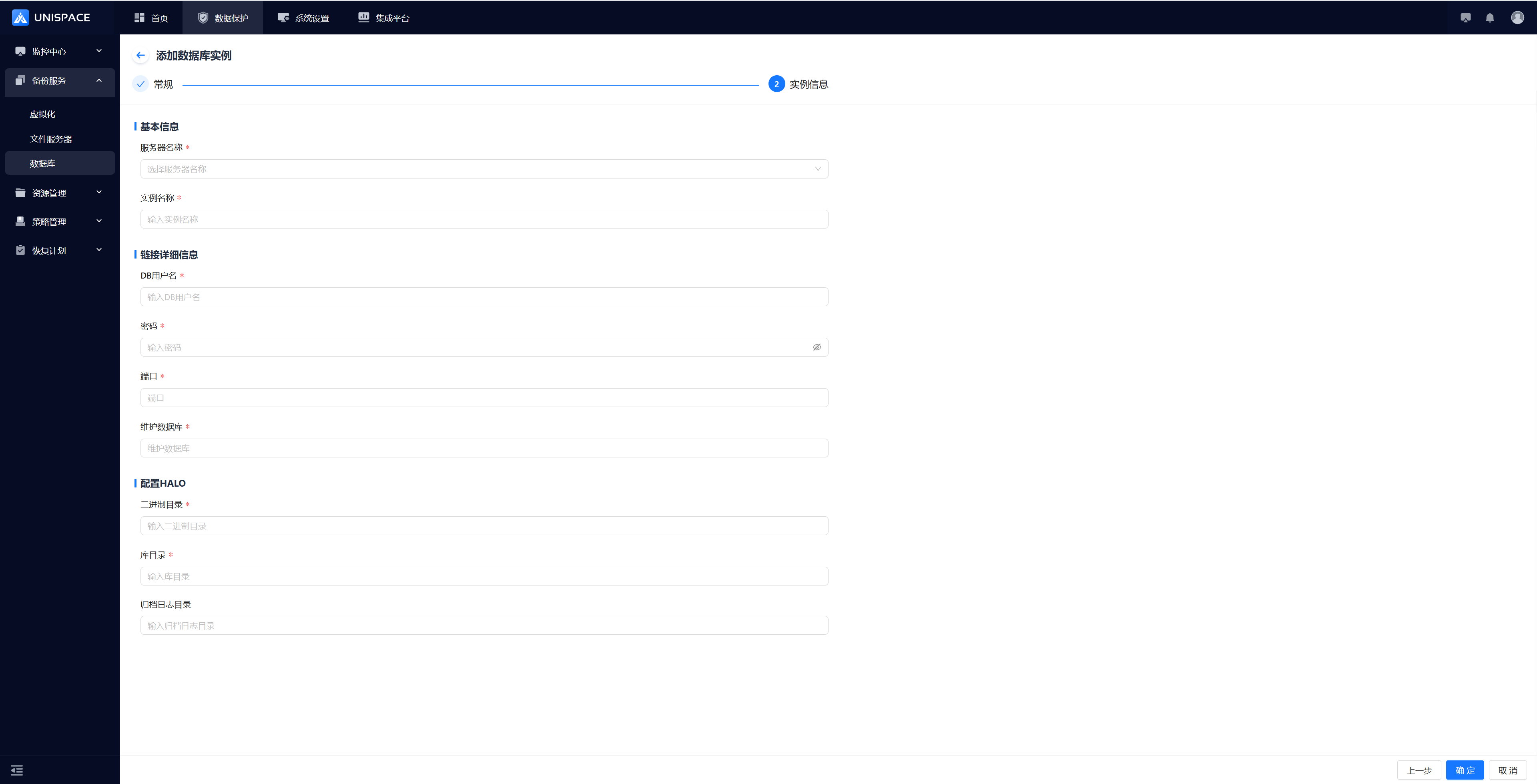 | Database Directory | Input box, required | Enter the correct Halo database directory |
