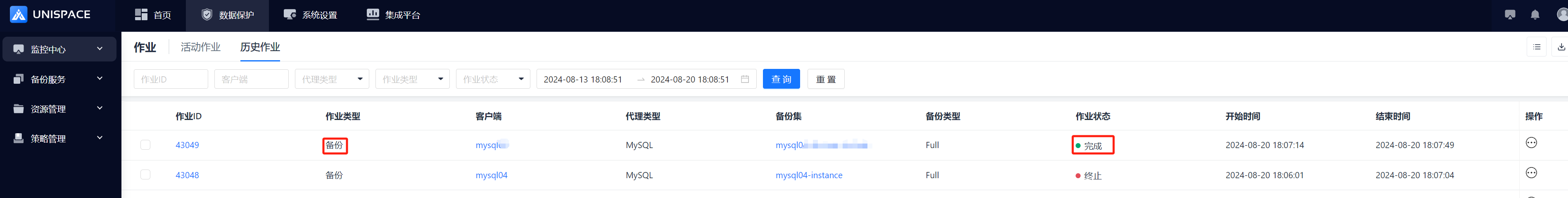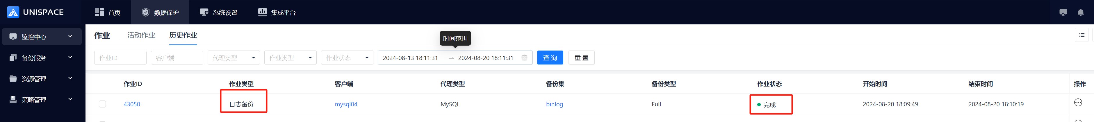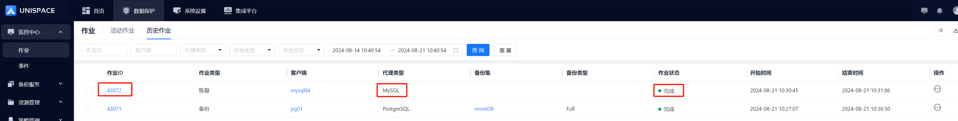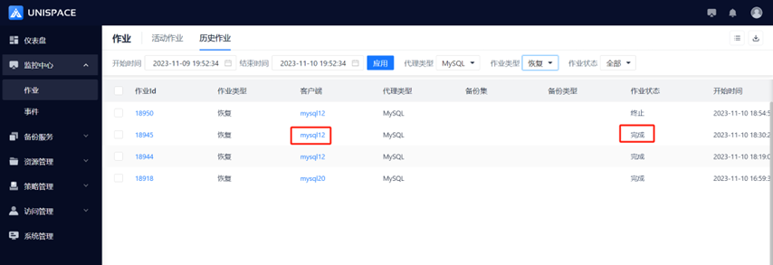 Step 5: After the backup completes, click Monitoring Center - Jobs - Job History to see the job and its status as "Completed".