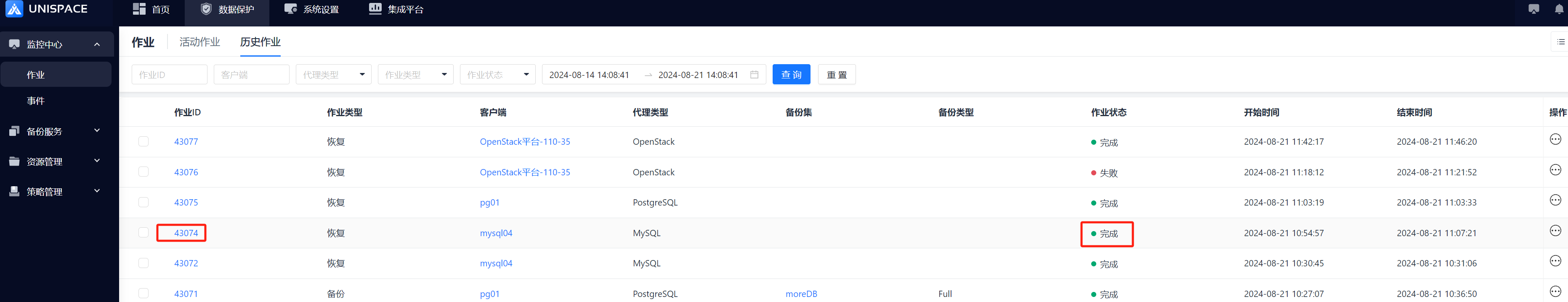 Step 7: After the job completes, click Monitoring - Job - Job History to see the job and its status. The job is considered successful only if the status is "Completed".
