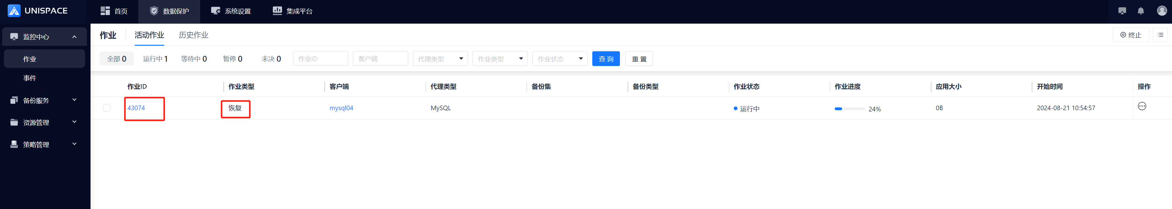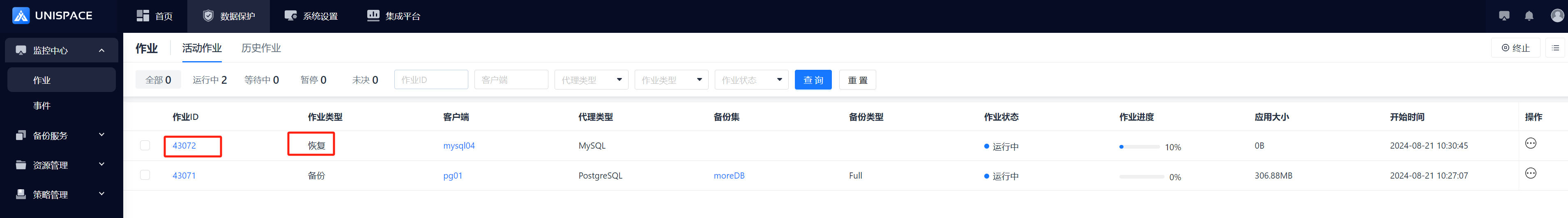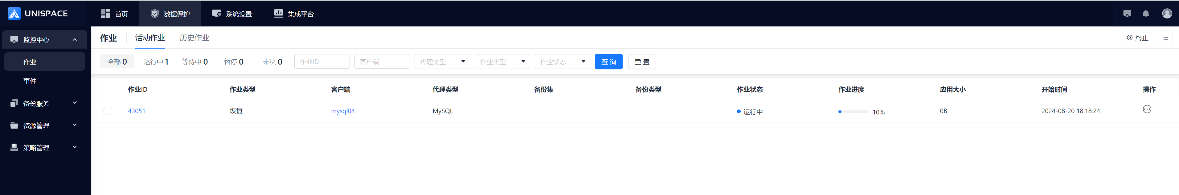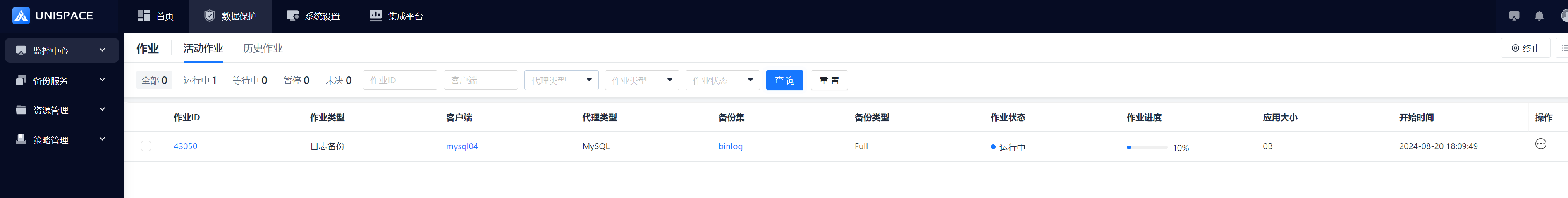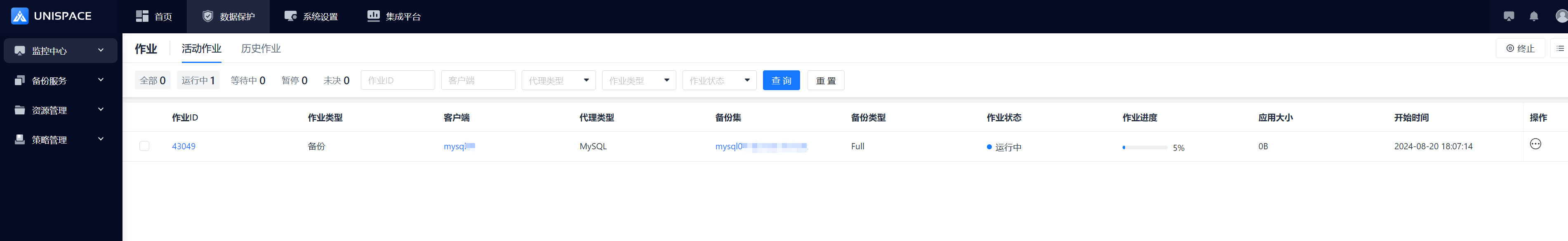 Step 4: Once the backup job starts successfully, click Monitoring Center - Jobs - Active Jobs to view the job.