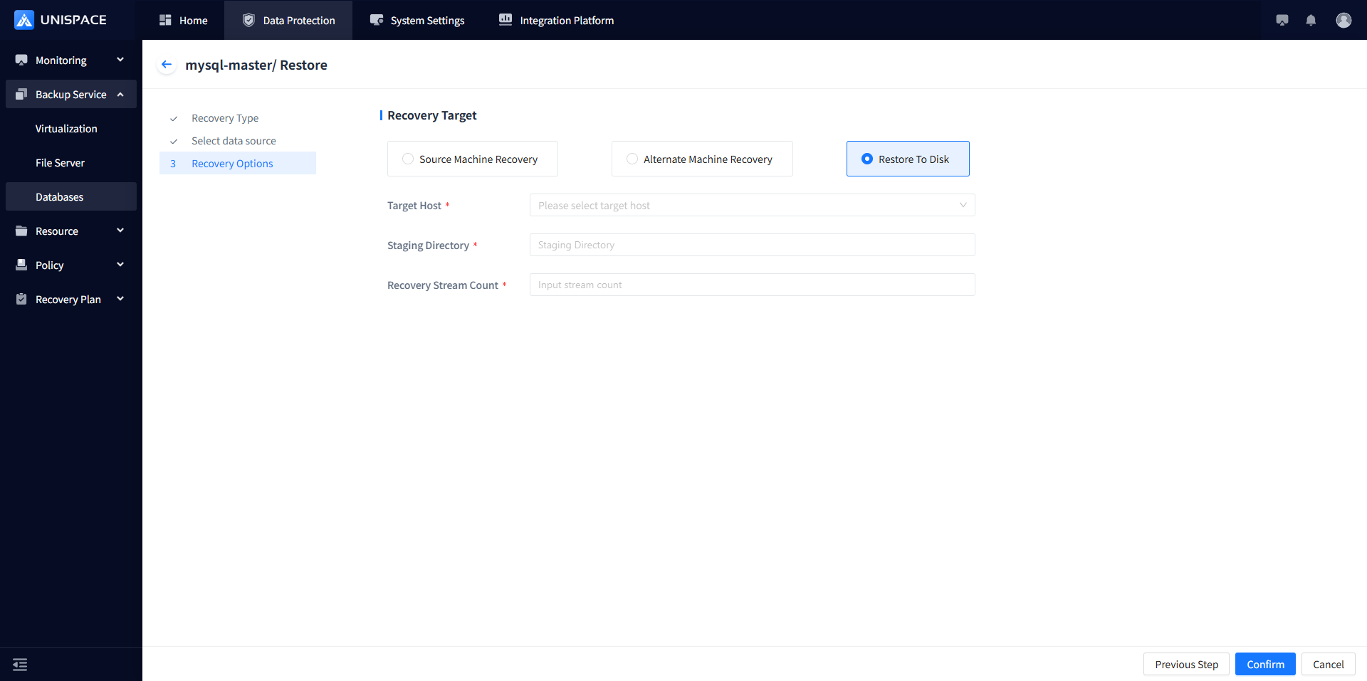 Step 5: Choose "Recovery to Disk" as the recovery option, enter the required information, and click Confirm.