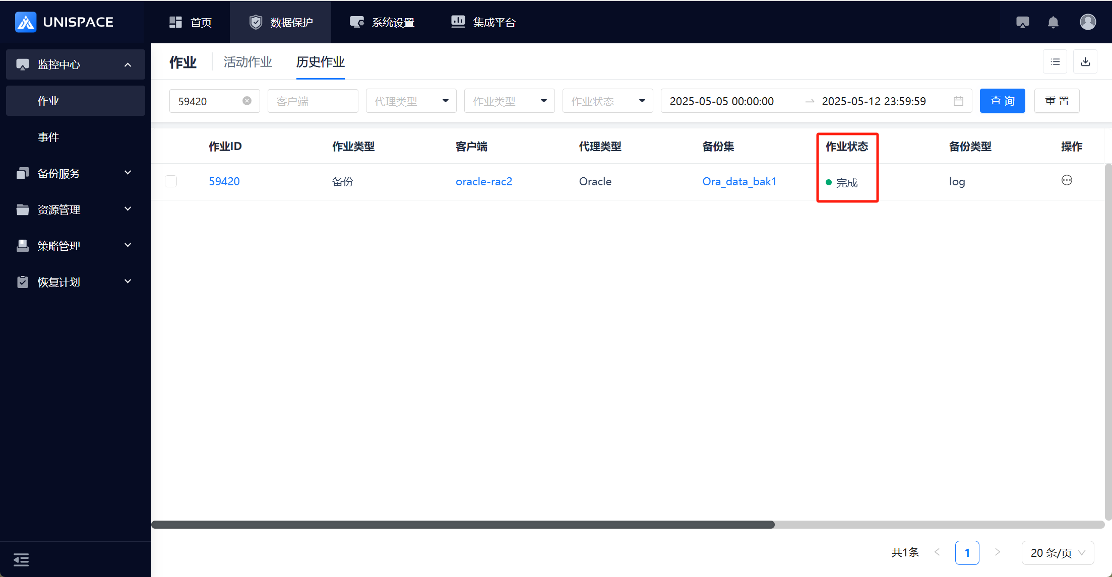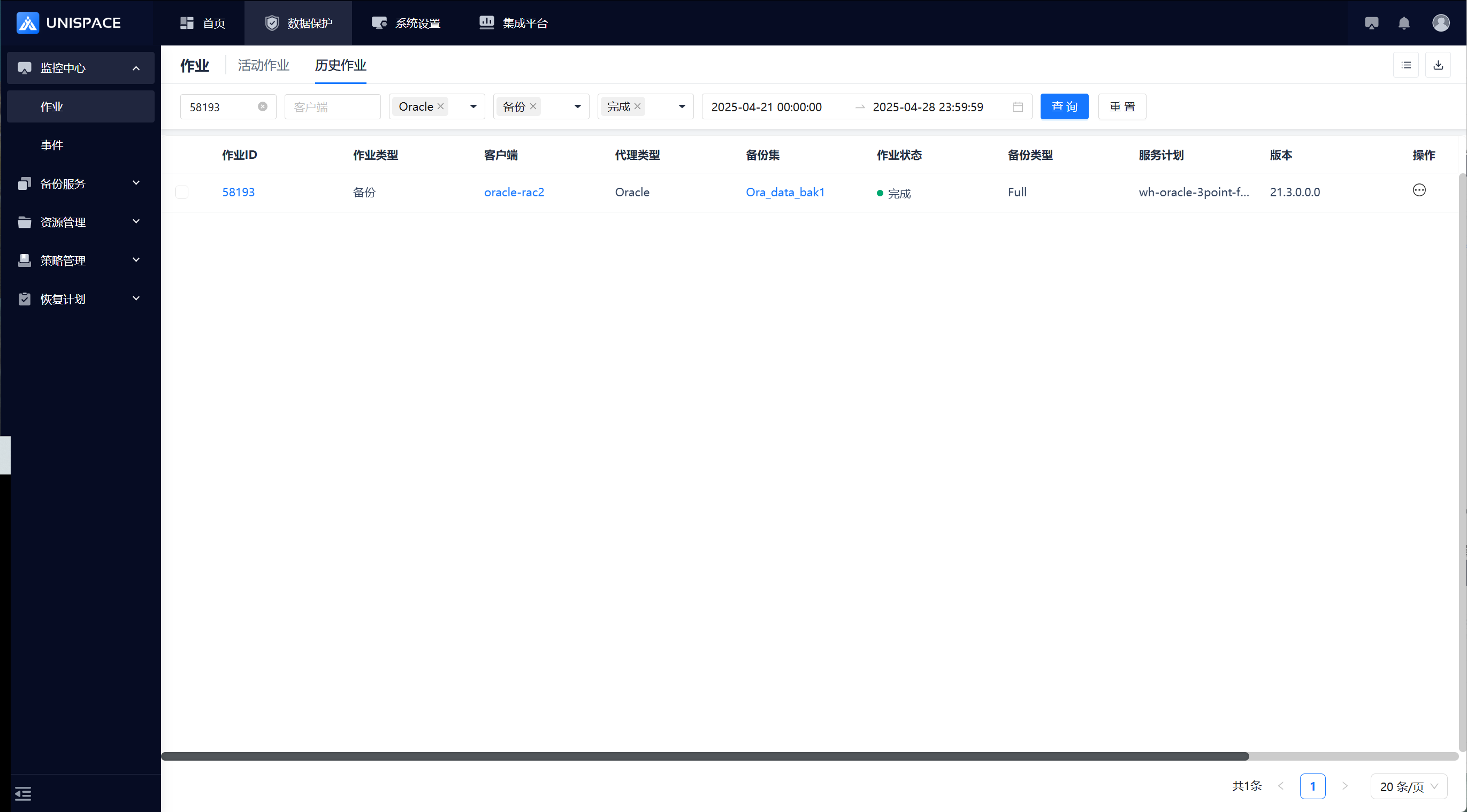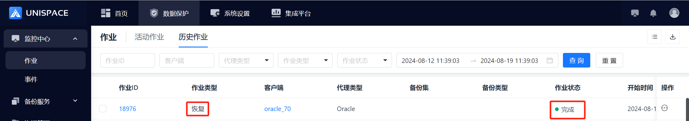 Step 5: After the backup is complete, go to Monitoring - Job - Historical Jobs to view the job, which should display a status of "Completed".