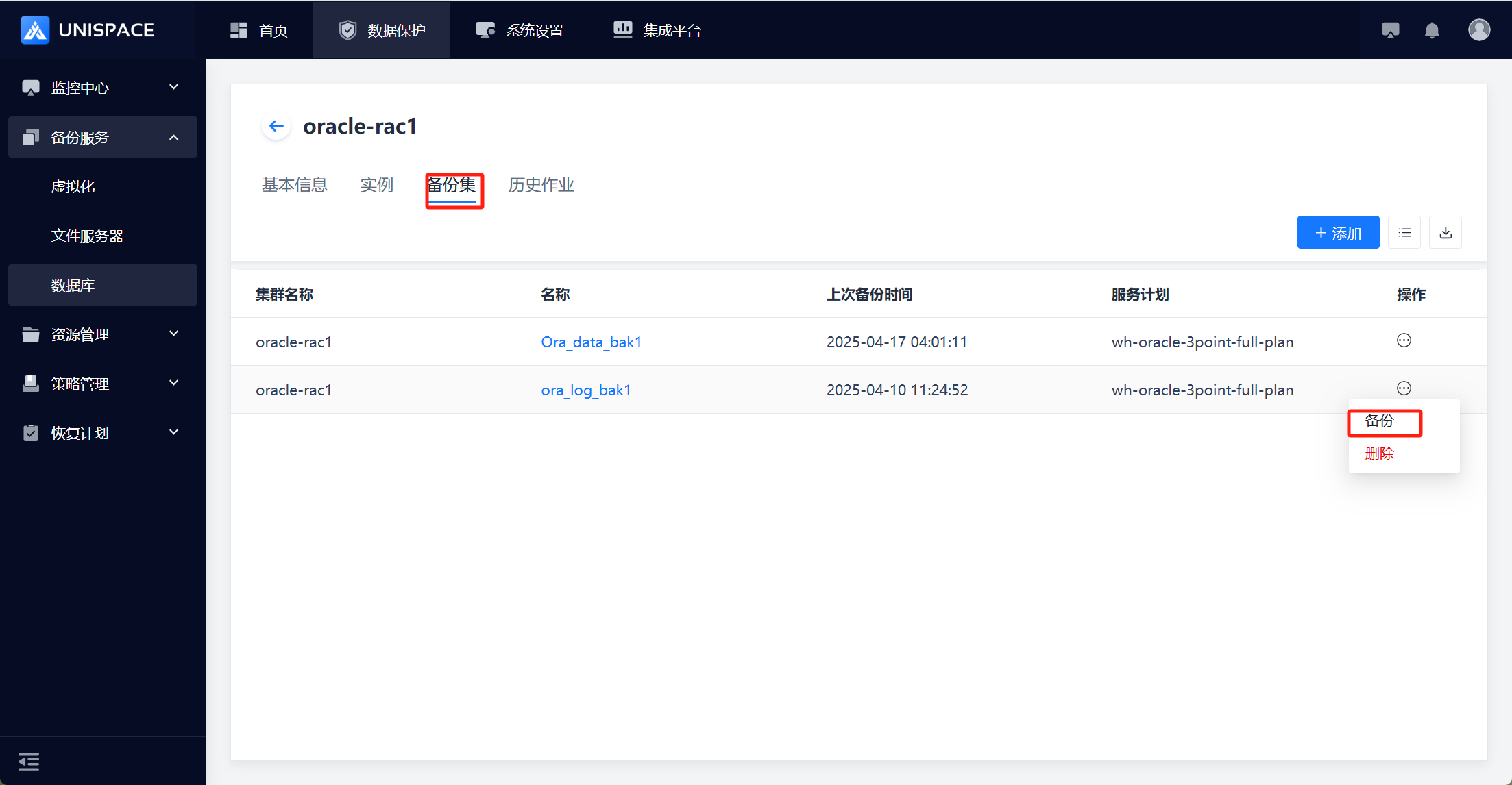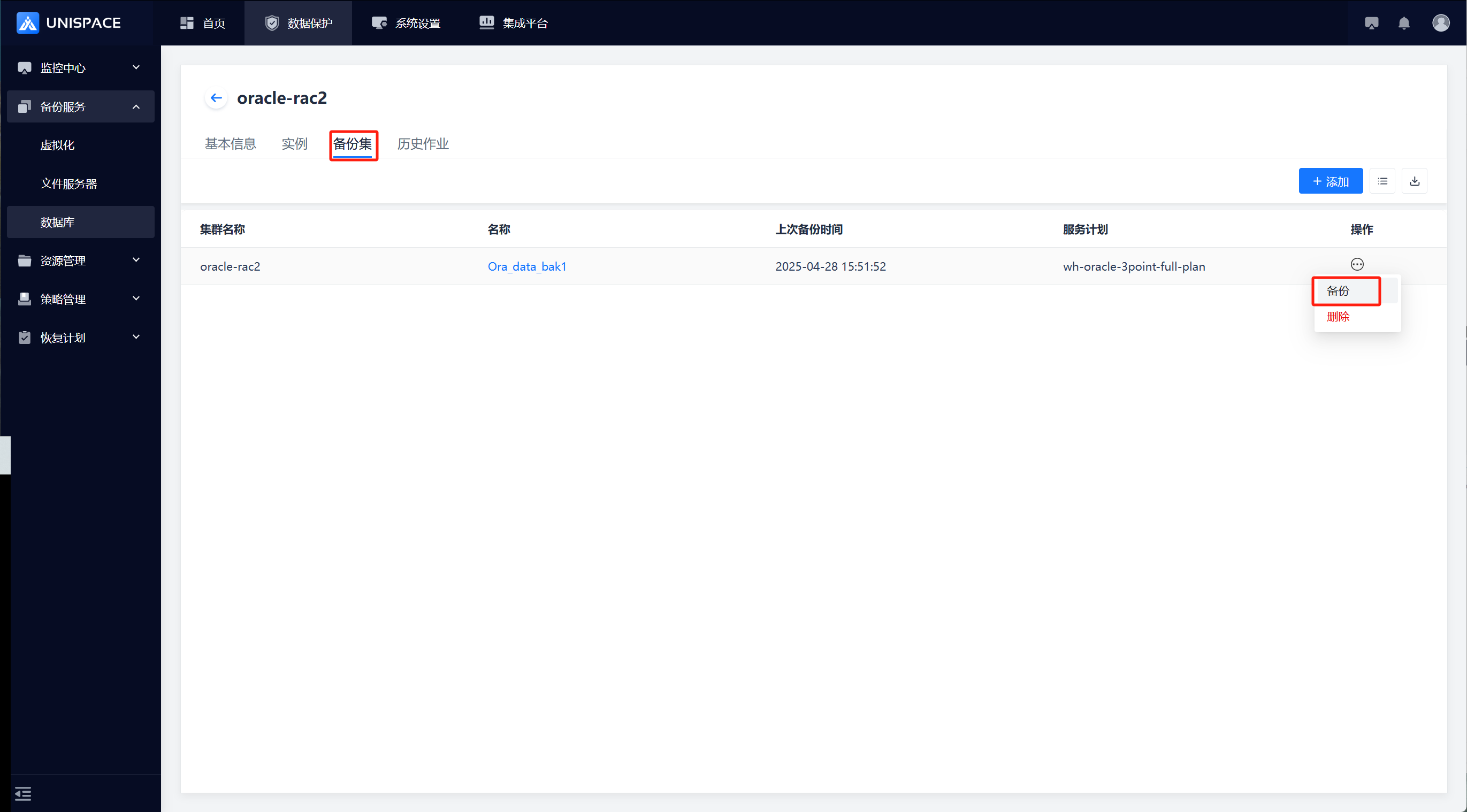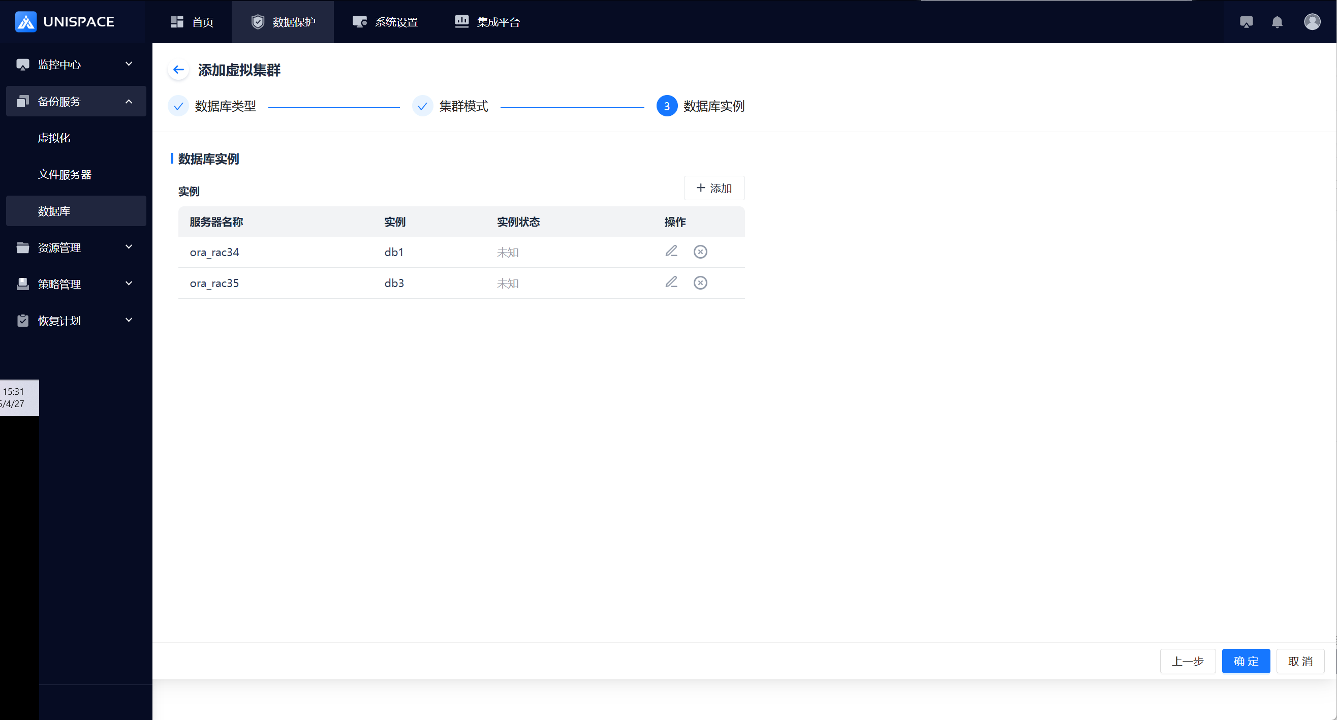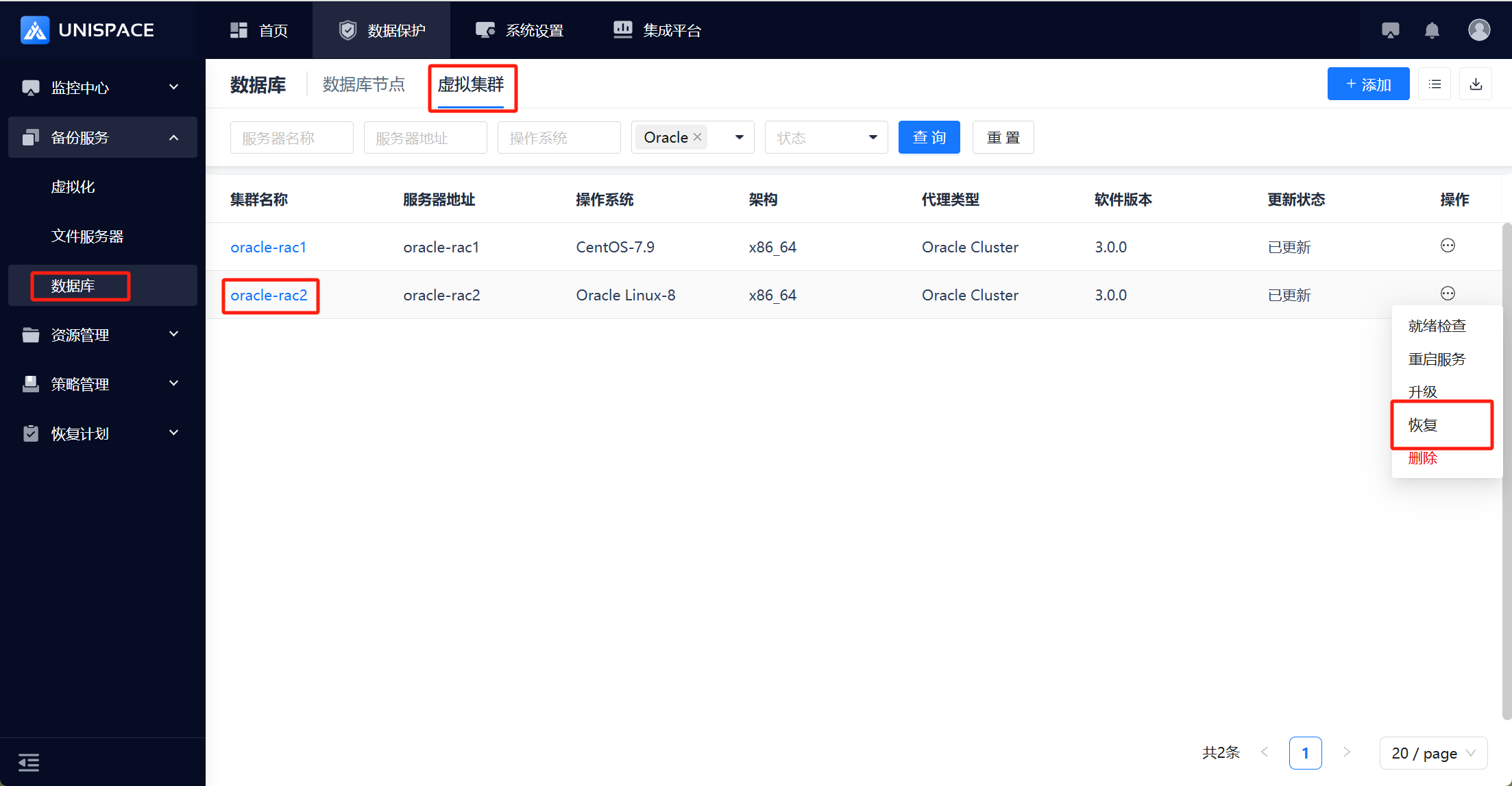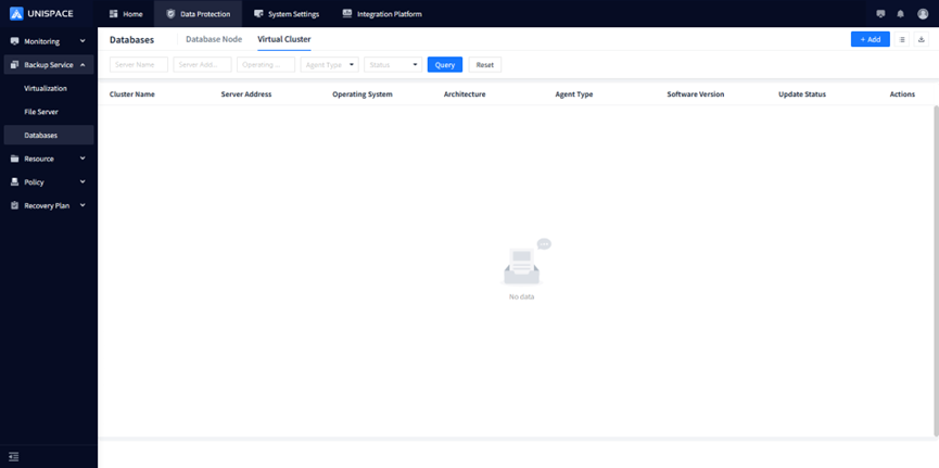 Step 1: Click the system menu Backup Services - Database - Virtual Cluster to enter the virtual cluster page.