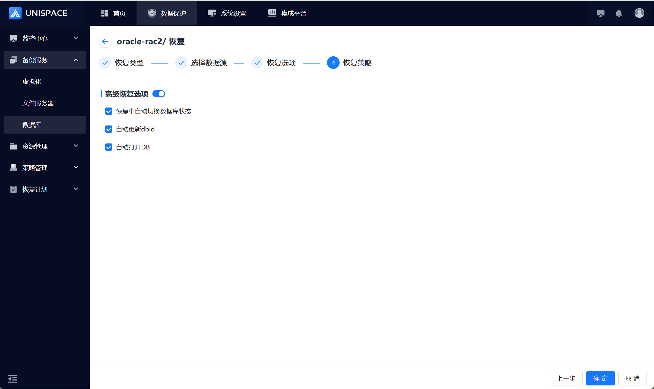 | Log Recovery Options | Specify the start and end time | Calendar selection, choose the time range to restore logs |