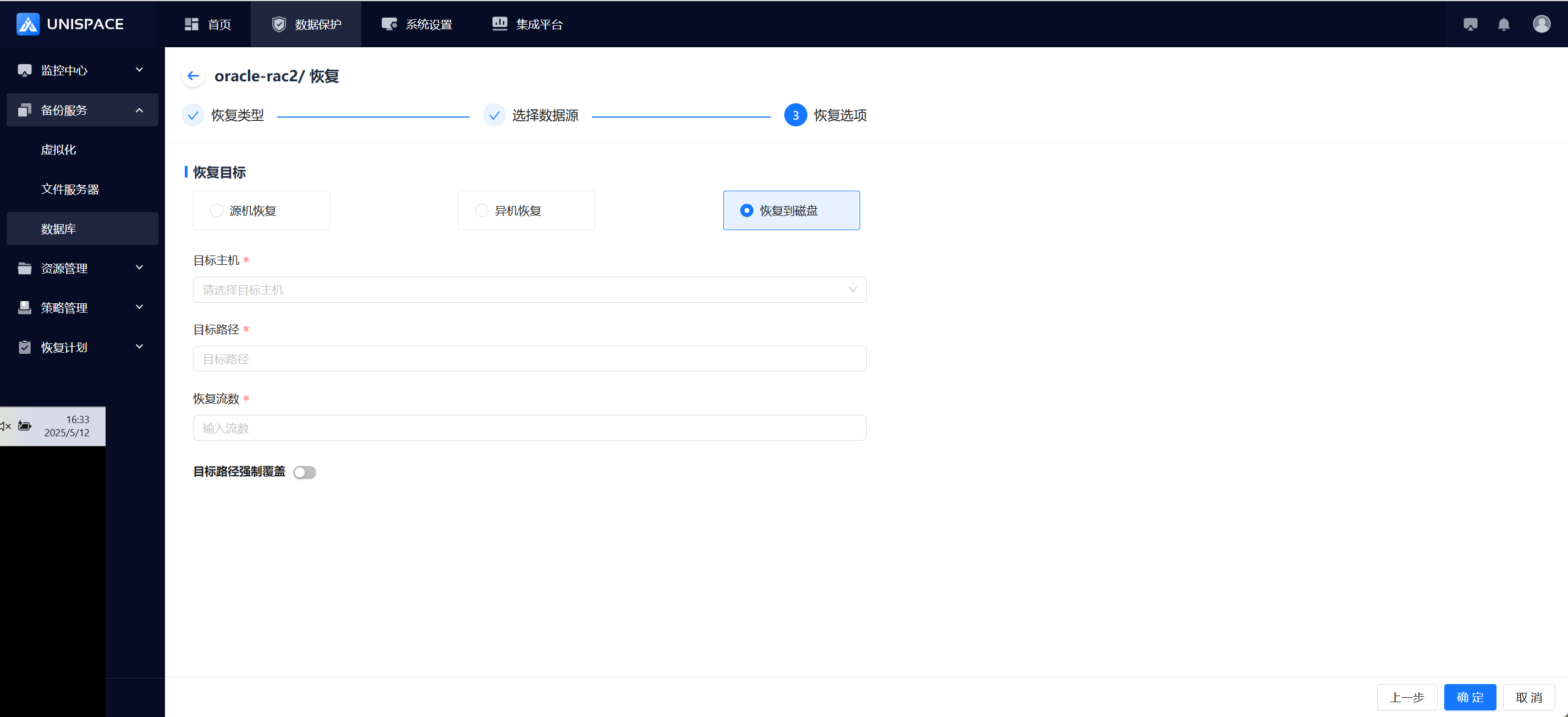 | Recovery Target | Single choice, default is cross-machine recovery | Select "Recover to Disk" |