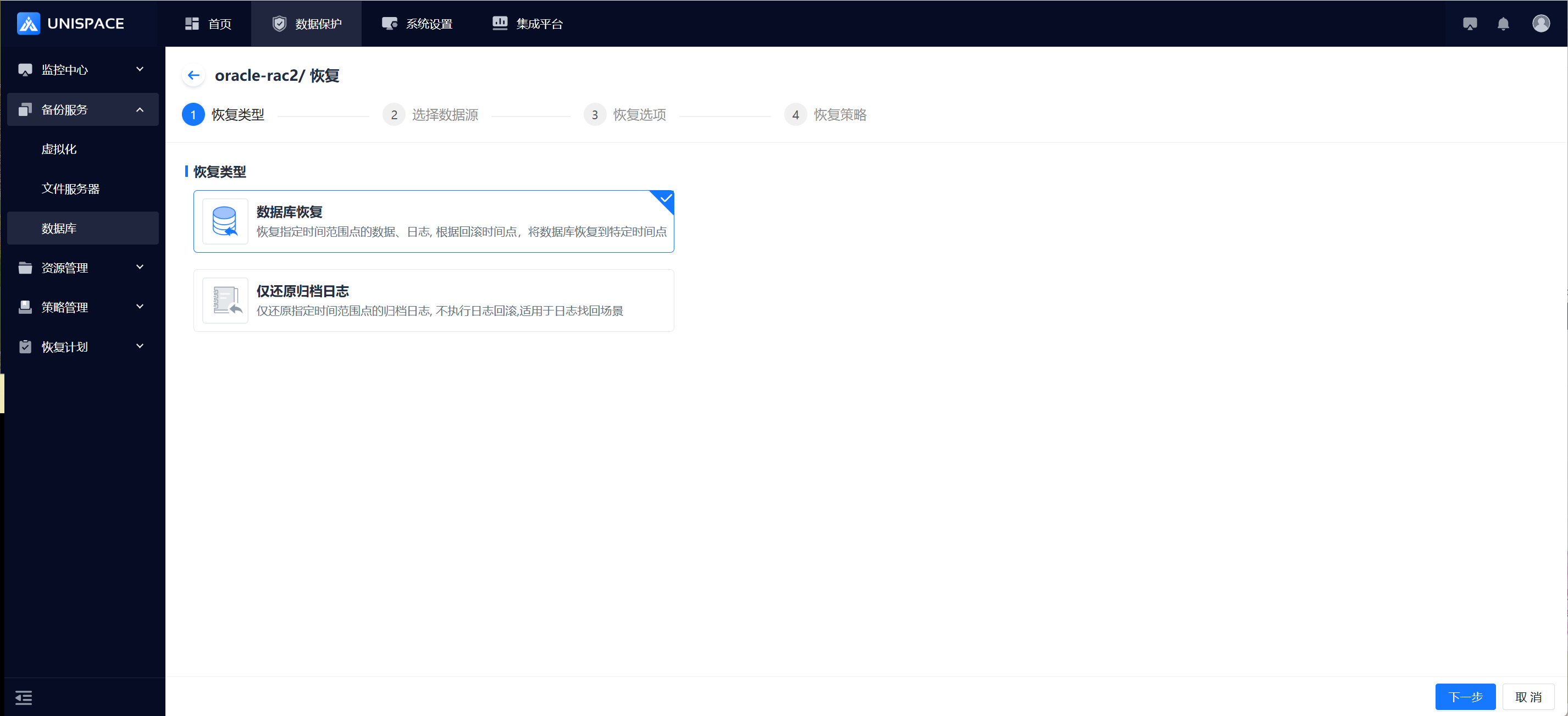 Step 2: A restore window appears, choose Restore Archive Logs Only, and click Next Step.