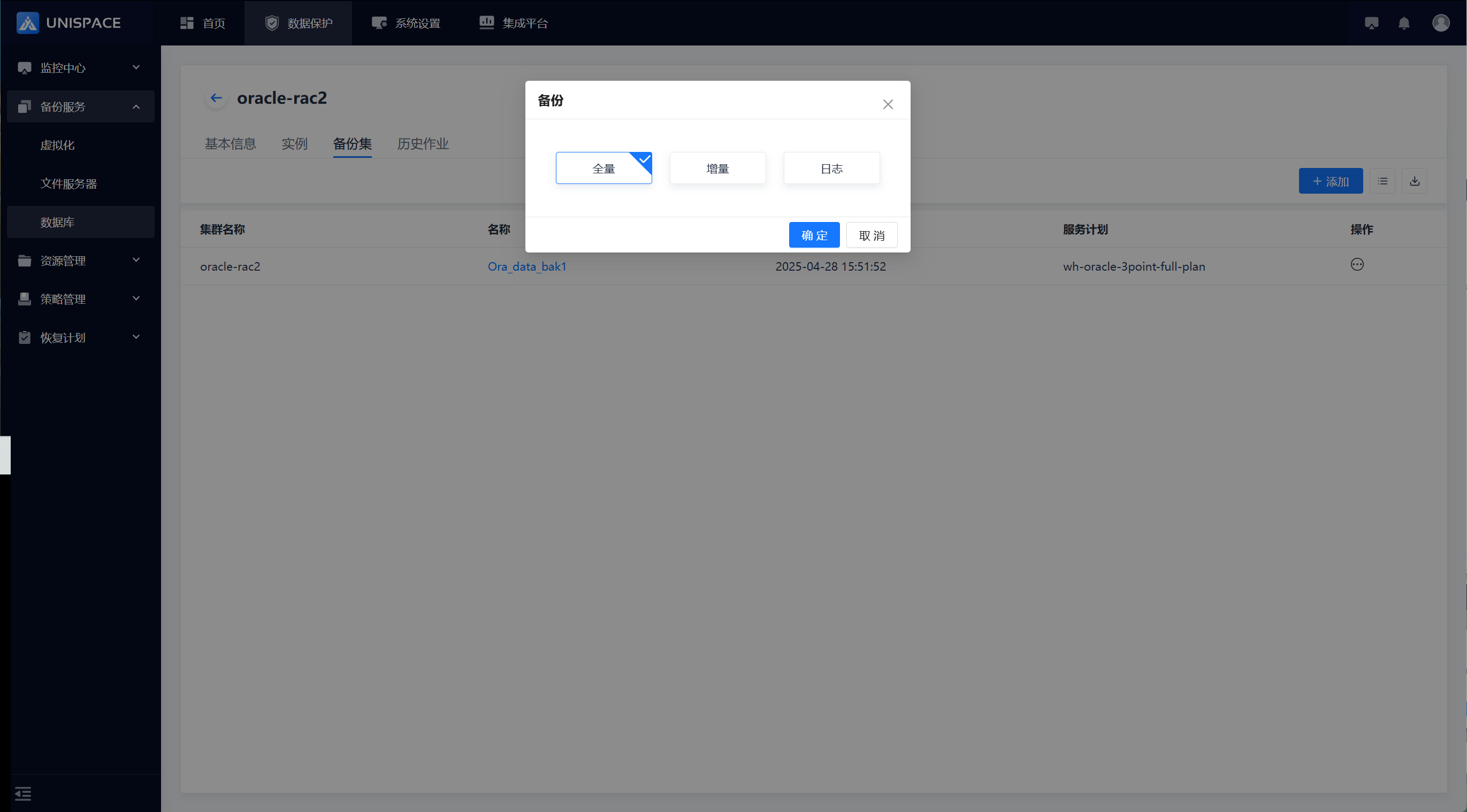 Step 2: In the pop-up, choose Full, Incremental, or Log, and click Confirm.
