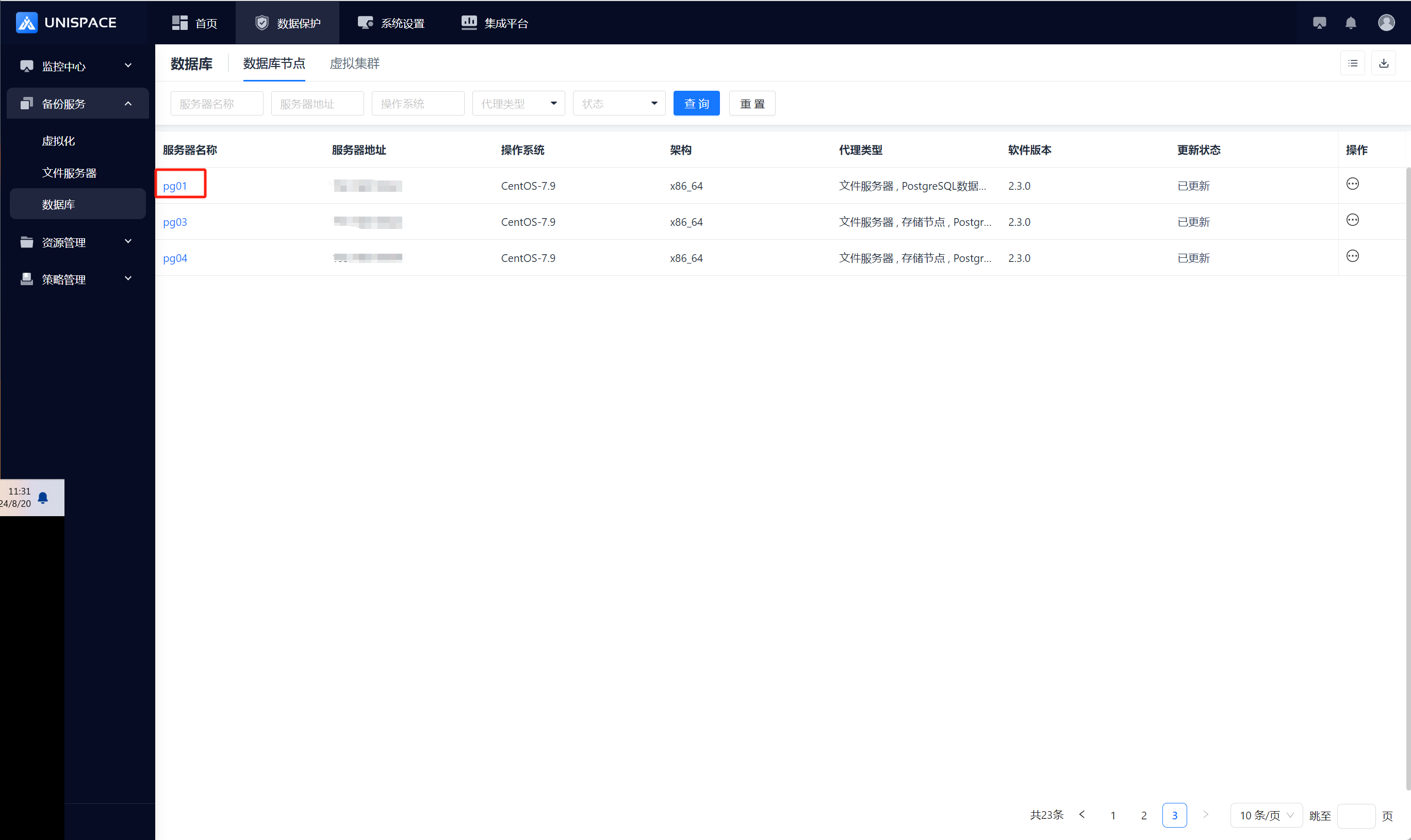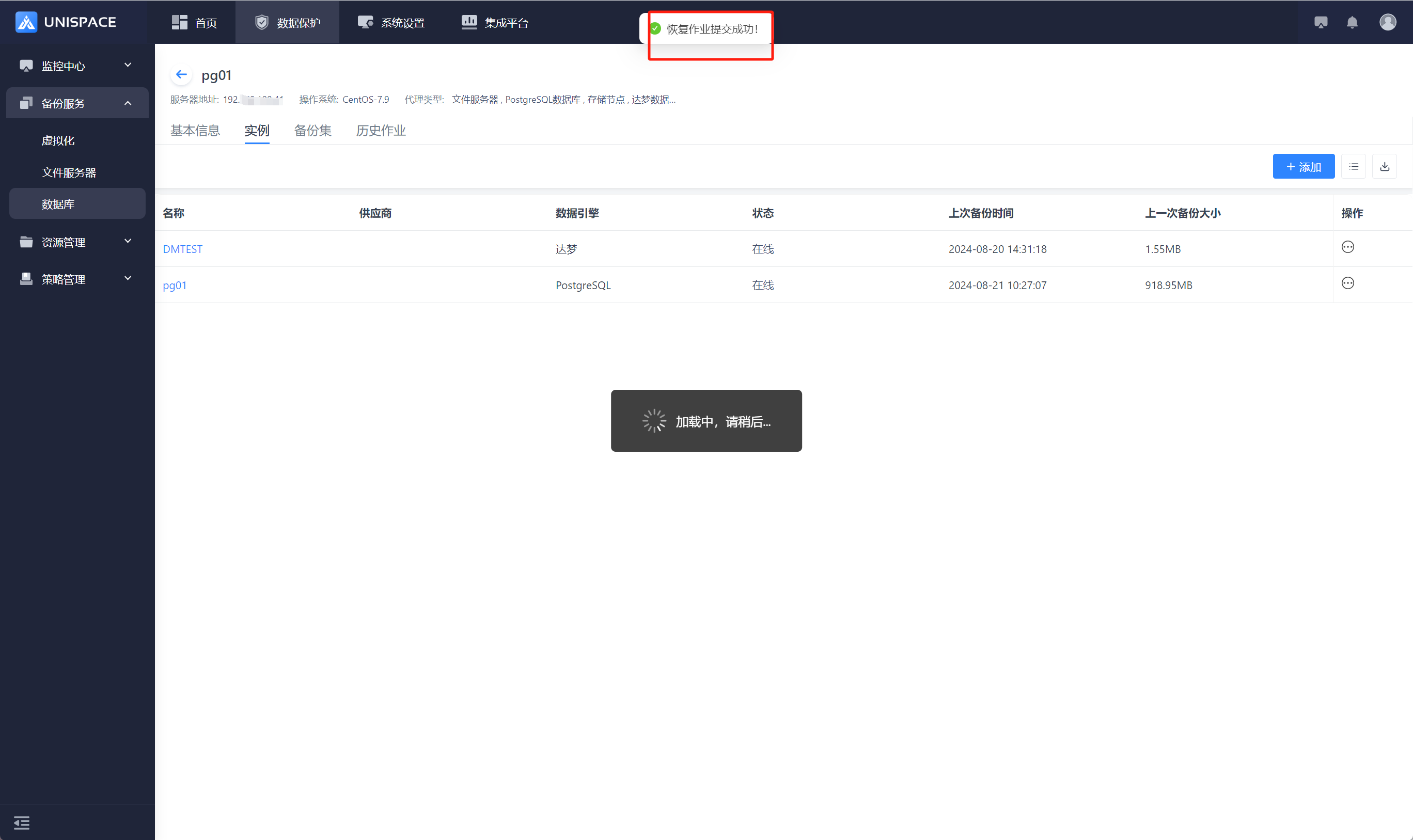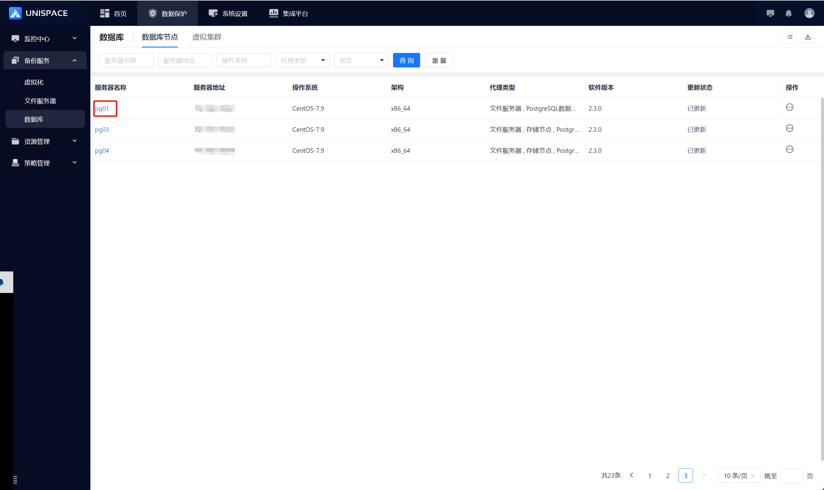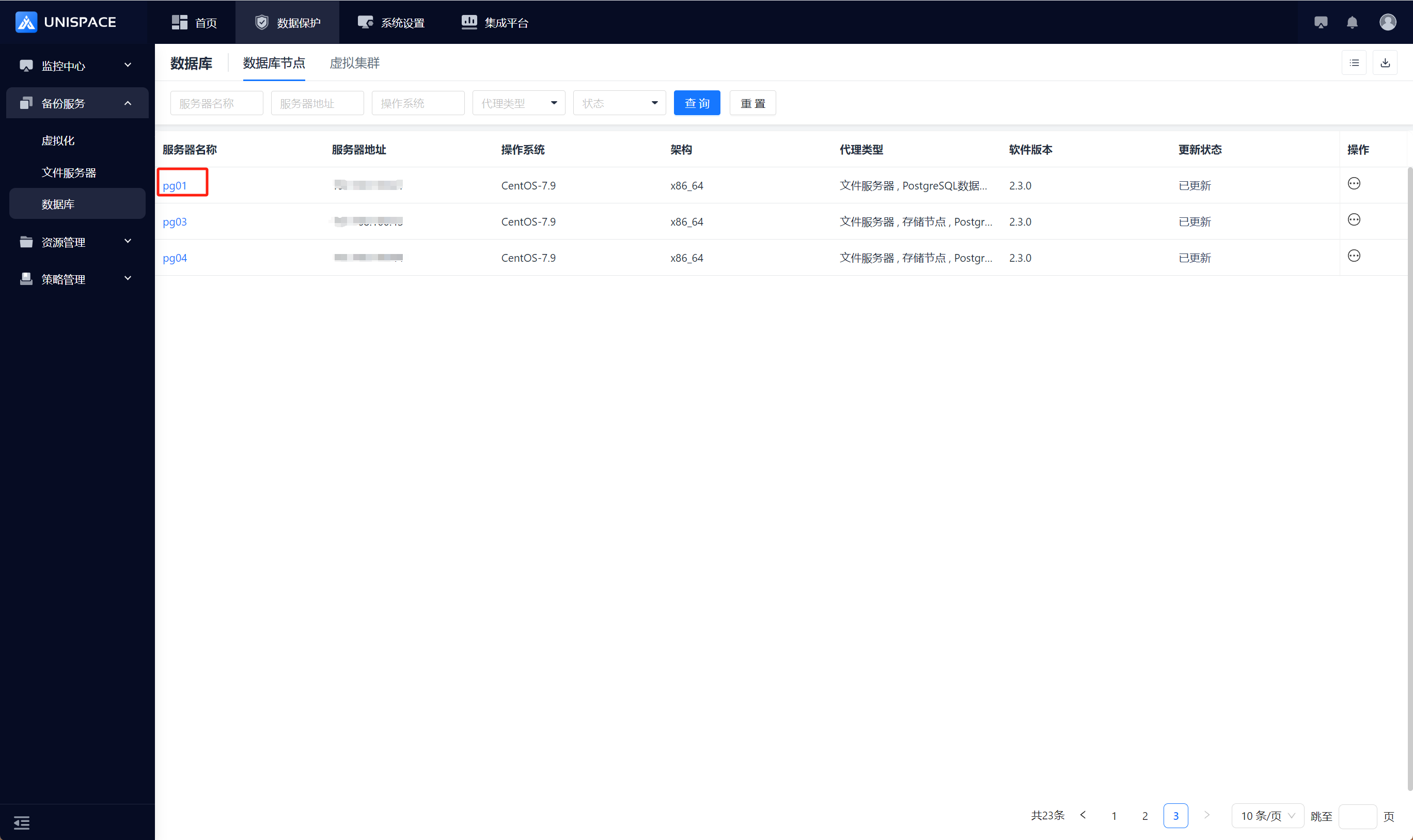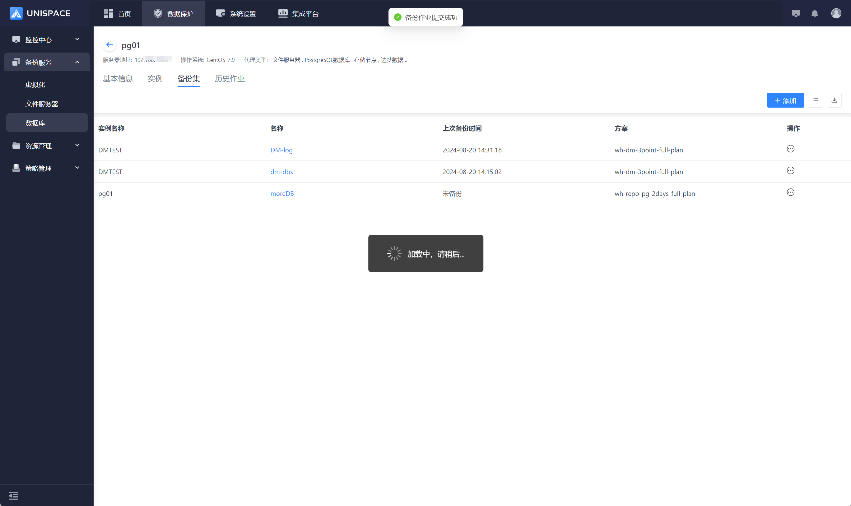 Step 1: Click on the system menu Backup Service - Database list, select "Server Name" to enter the database instance page.