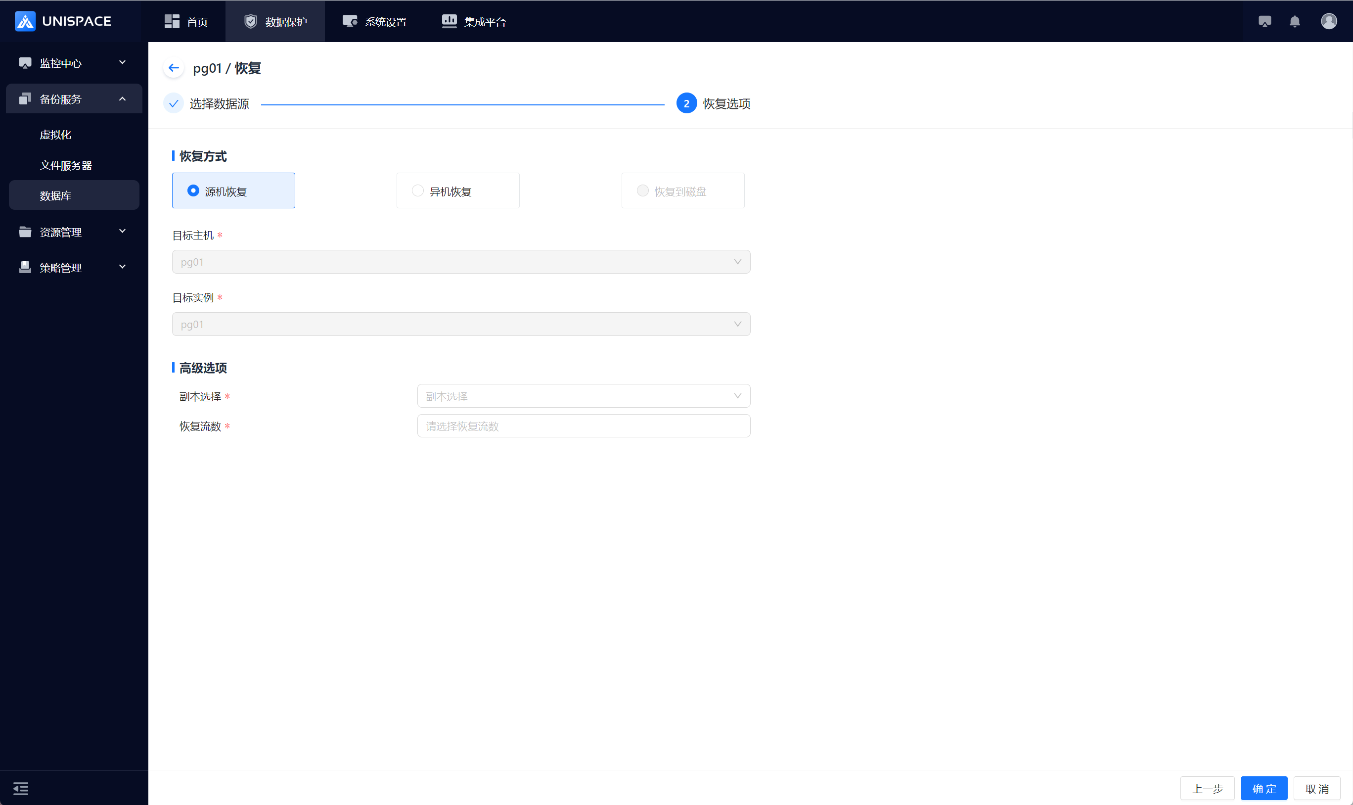 | Target Instance | Default to Source Instance, greyed out | For Cross-Machine Recovery: select the created PG instance |