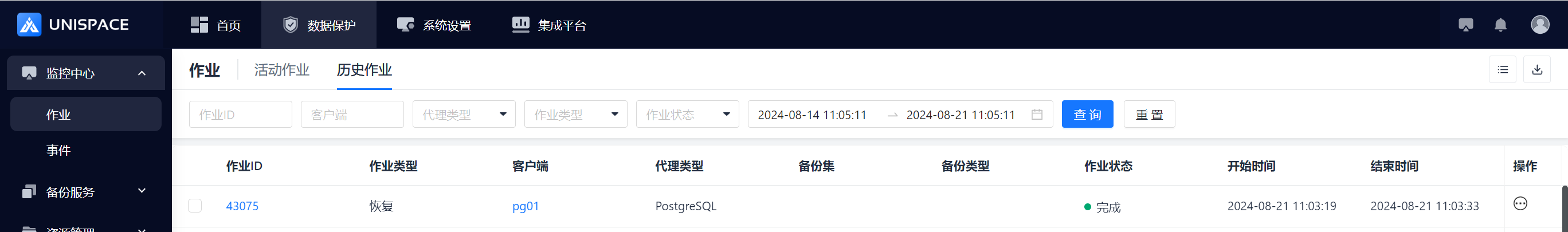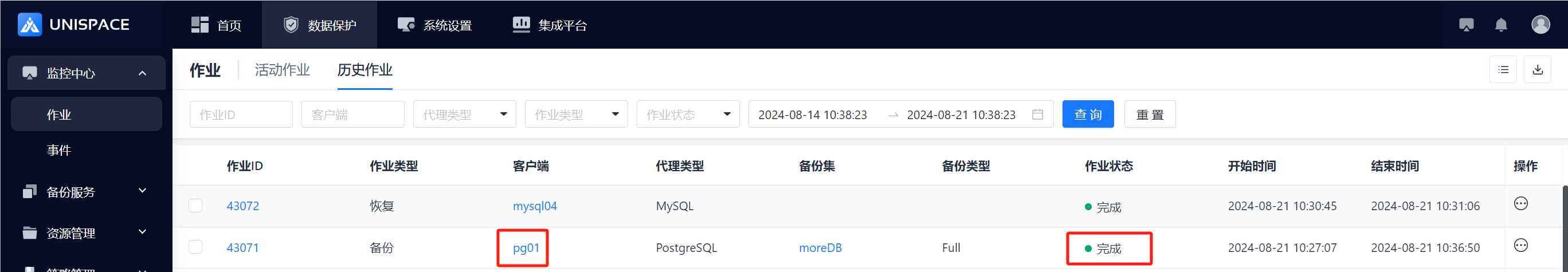 Step 5: After the backup is completed, go to Monitoring Center - Jobs - Historical Jobs to check the backup set job, with the job status showing "Completed".