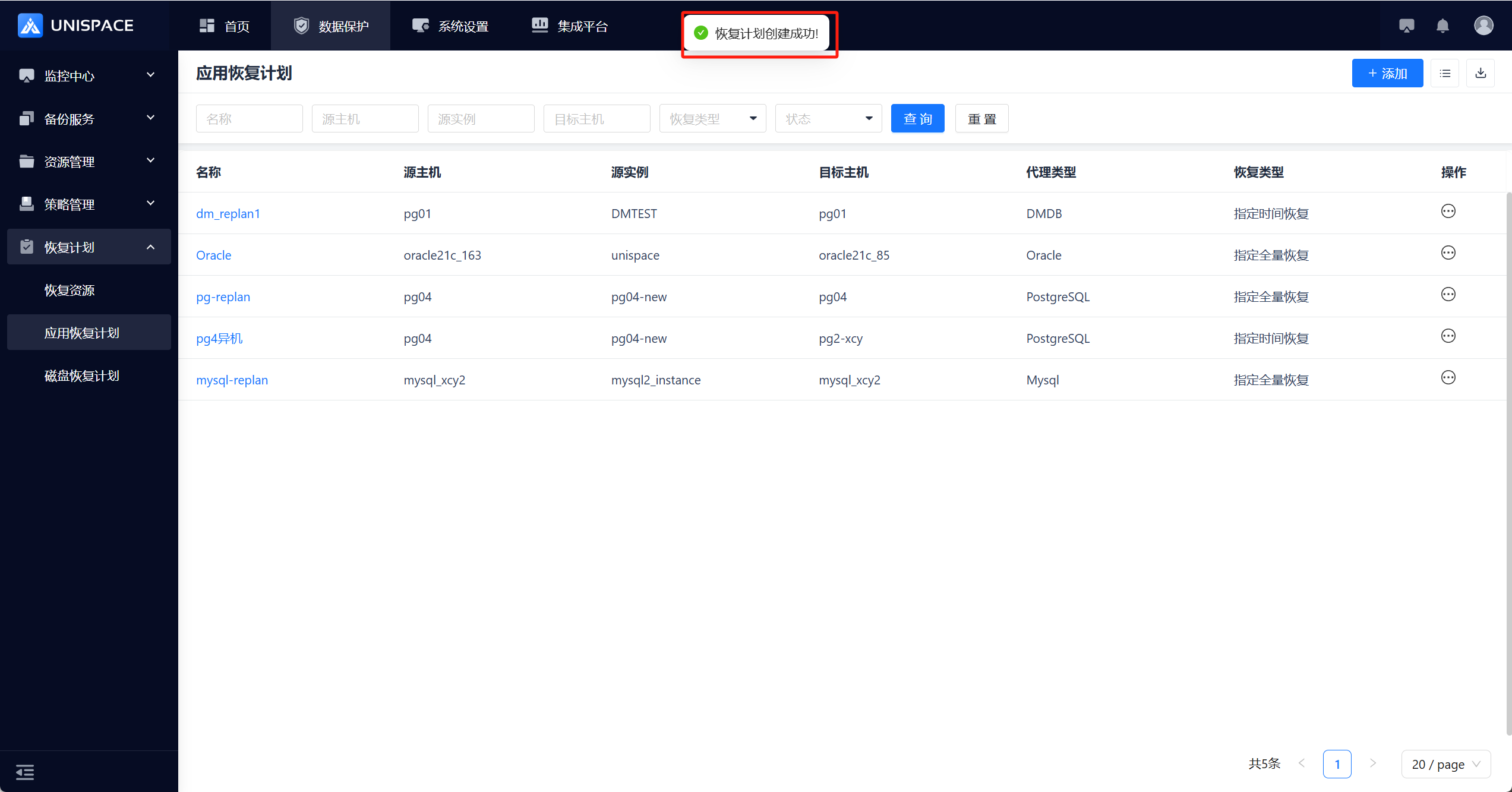 | Add Plan | Schedule for automatic recovery execution | See Step 8 |
