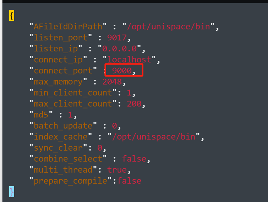 sed -i 's/9000/9001/g' /opt/unispace/config/csd.json