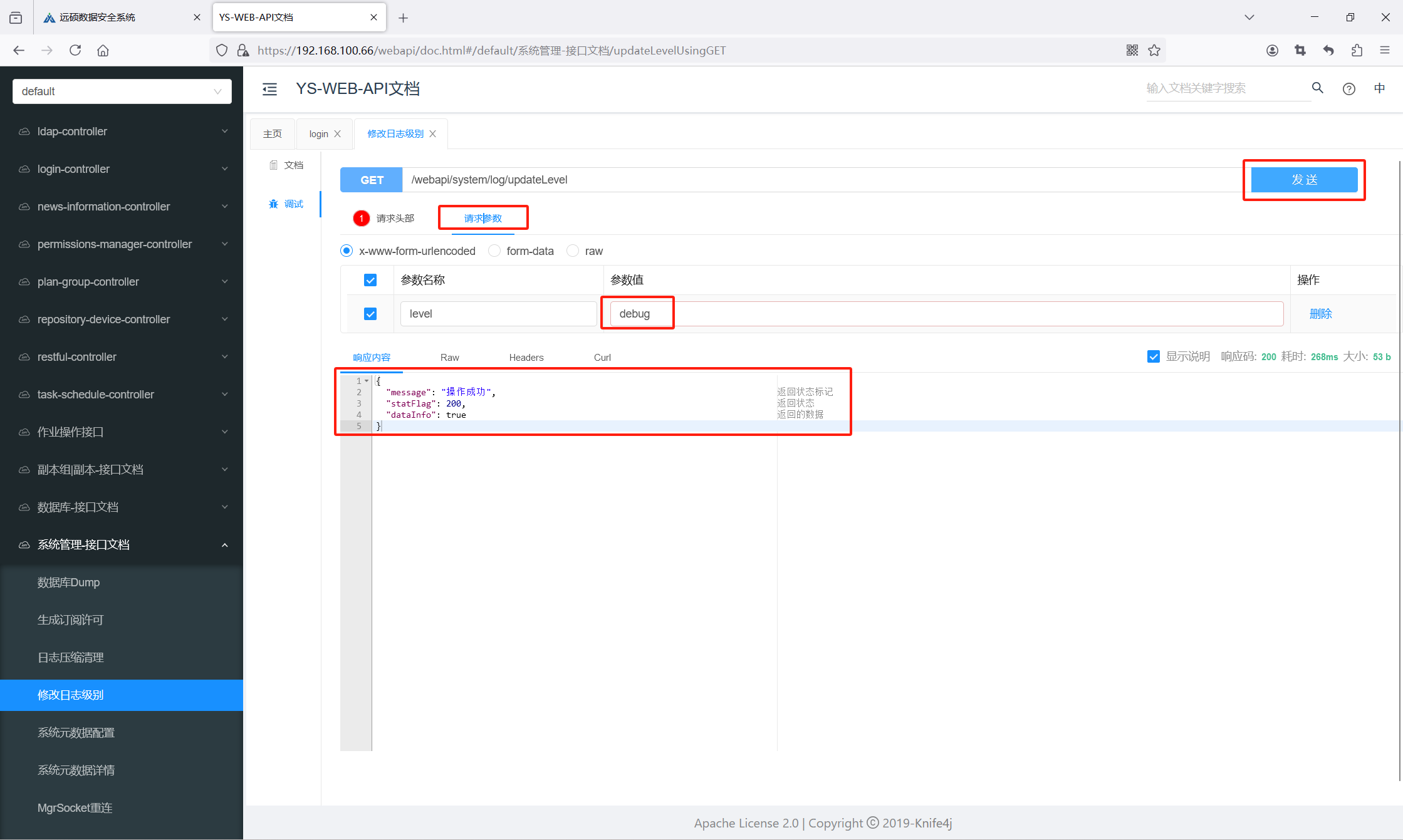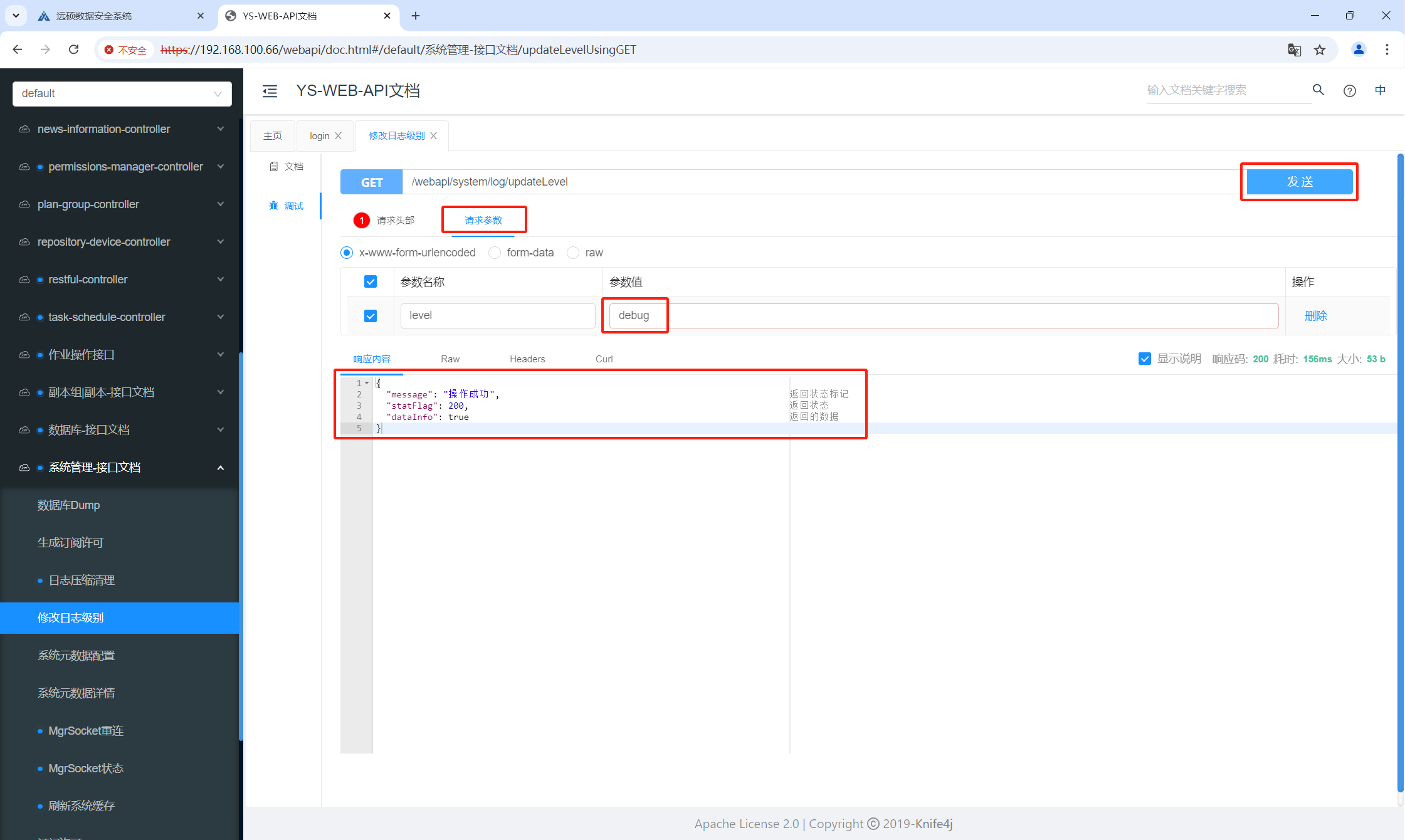 In the Request Body, enter "debug" as the parameter. Click Execute. If the response returns “Operation Successful”, the log level has been updated.
