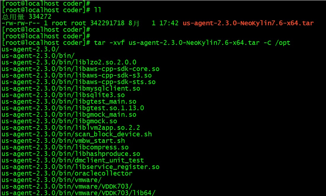 tar -xvf us-agent-xxx-xxx.tar -C /opt