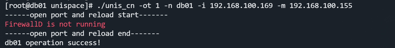-ot — 1 for registration, 2 for update-n — Storage Node name (customizable)-i — Storage Node IP address (local IP)-a — Storage Node type./unis_cn -ot 1 -n highgo84 -i 192.168.100.84 -a "[2,16]" -m 192.168.100.155 -d 192.168.100.84