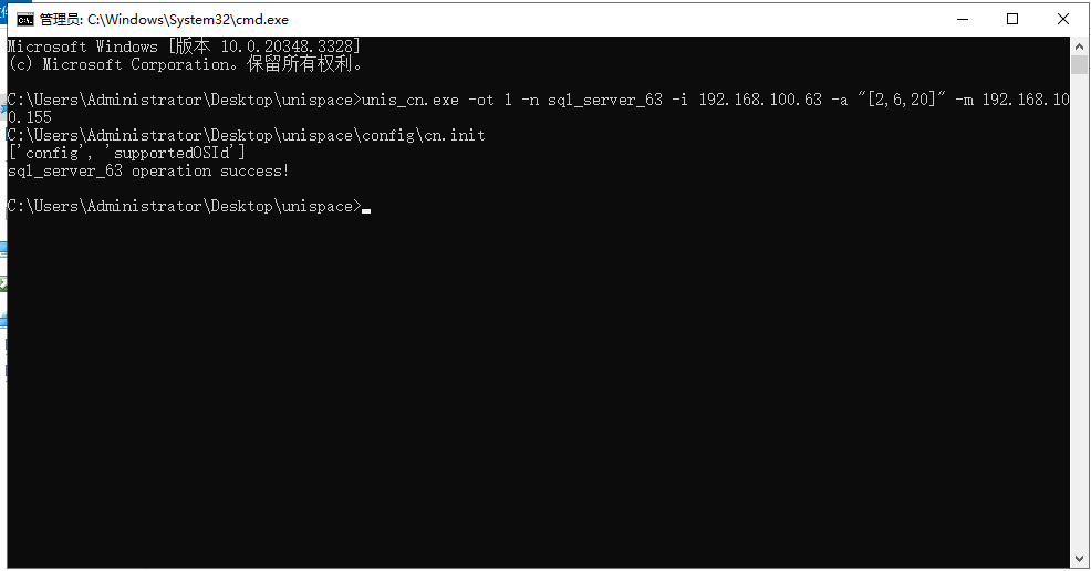 ./unis_cn.exe -ot 1 -n wind_client -i 192.168.100.84 -a "[2,20]" -m 192.168.100.155