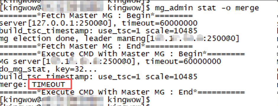 The KingWow database cannot be merged after the recovery is completed. The cluster status is abnormal, DDL statements cannot be executed, and the merge status display times out.