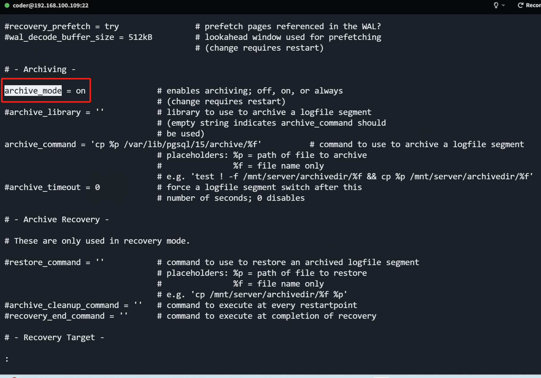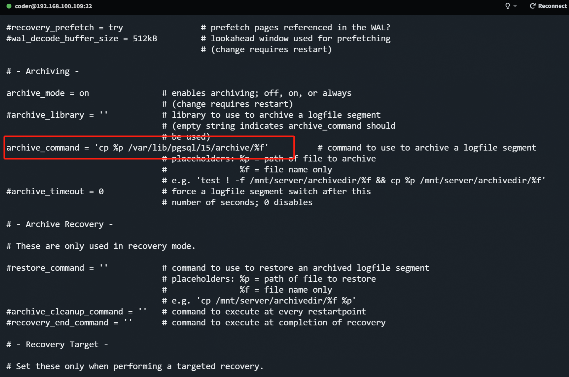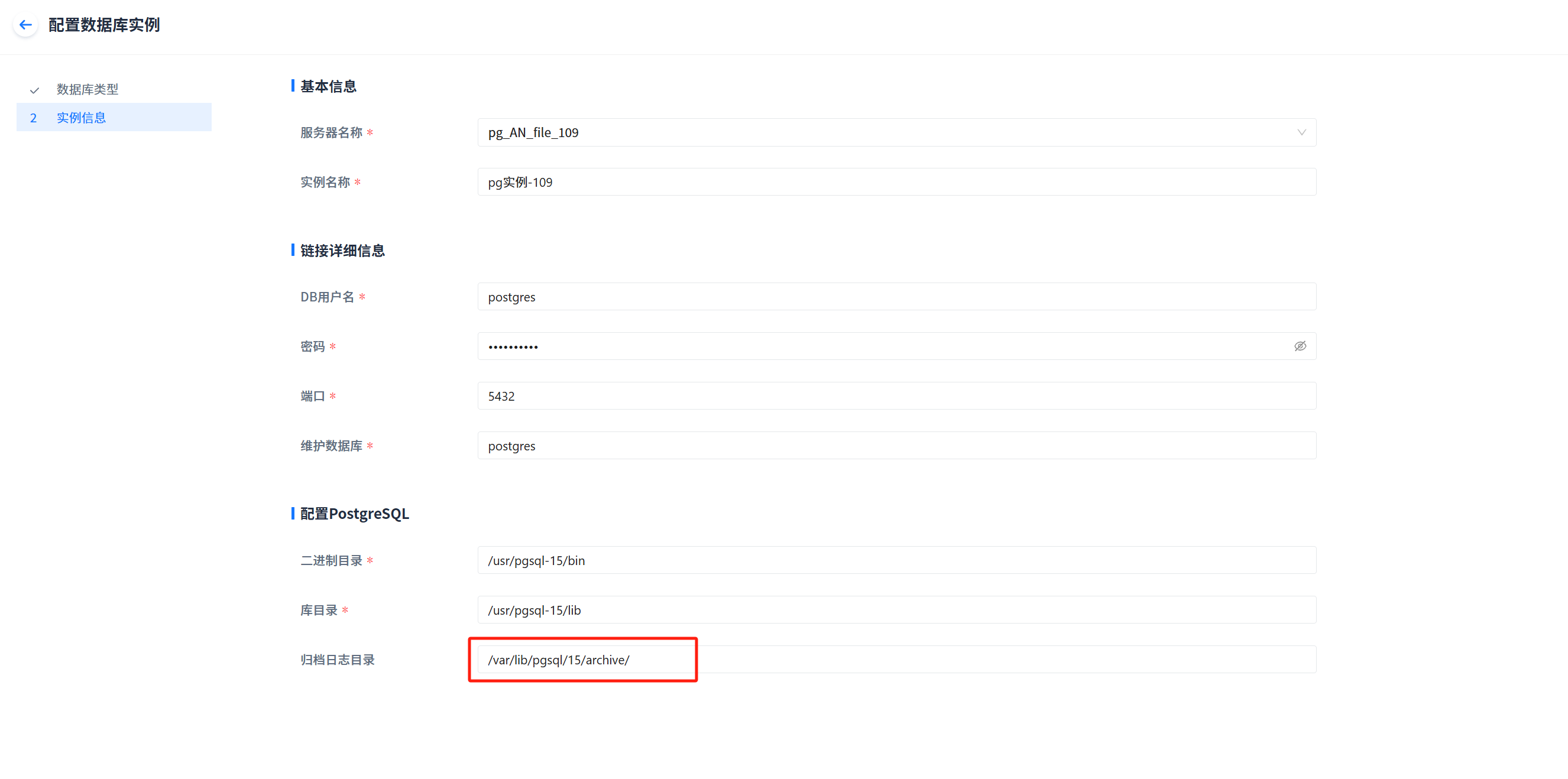 Solution: Modify the PostgreSQL.conf file and reconfigure the archive directory in the instance.