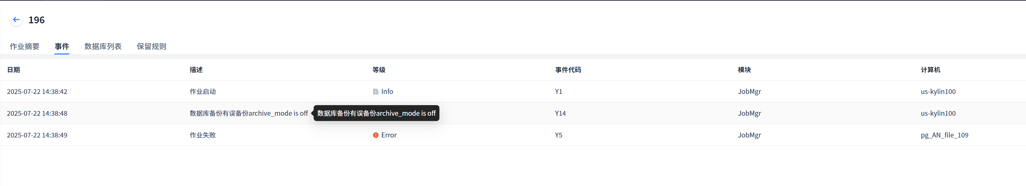 Solution: Modify the PostgreSQL.conf file, restart the pg service, and re-initiate the backup.