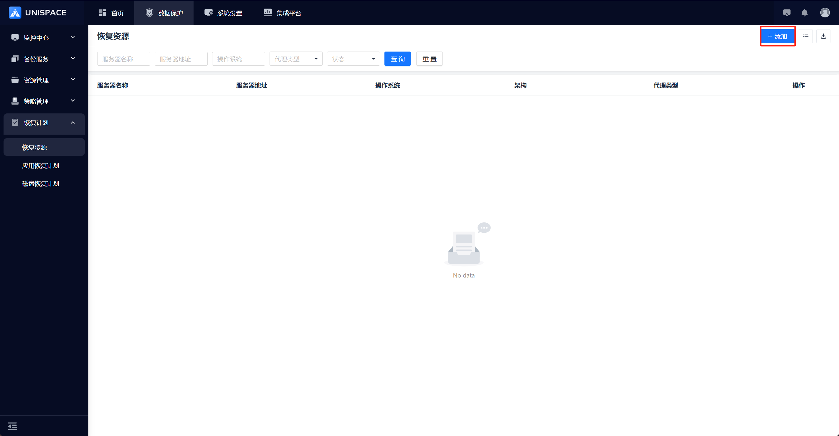 Step 1: In the left navigation pane, go to Recovery Plan - Recovery Resources to enter the recovery resources page.