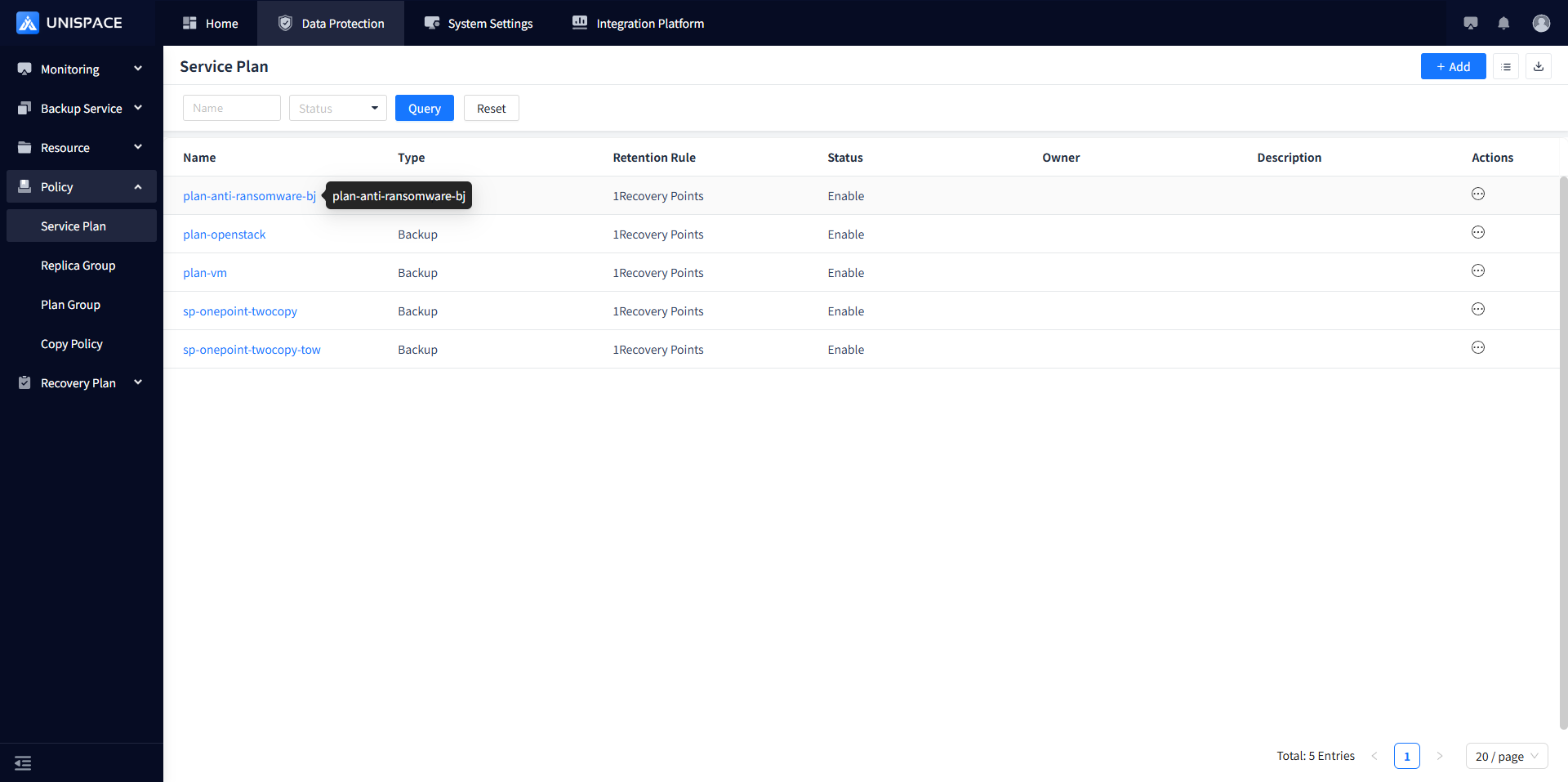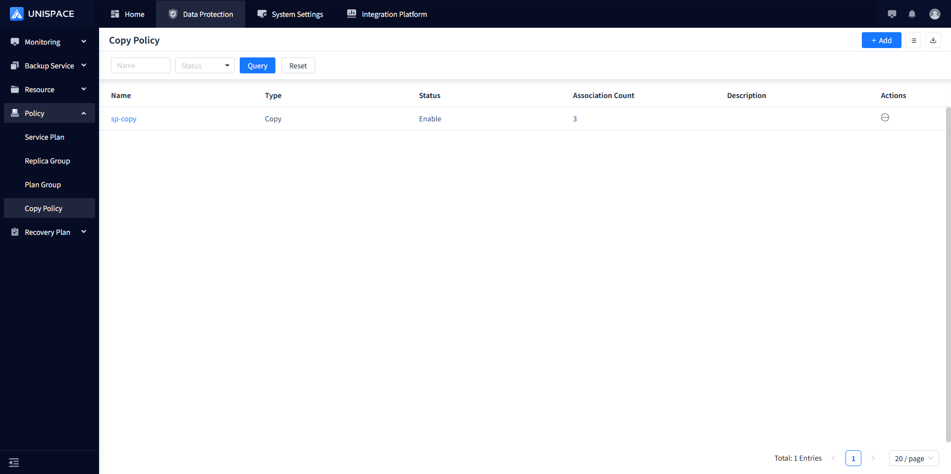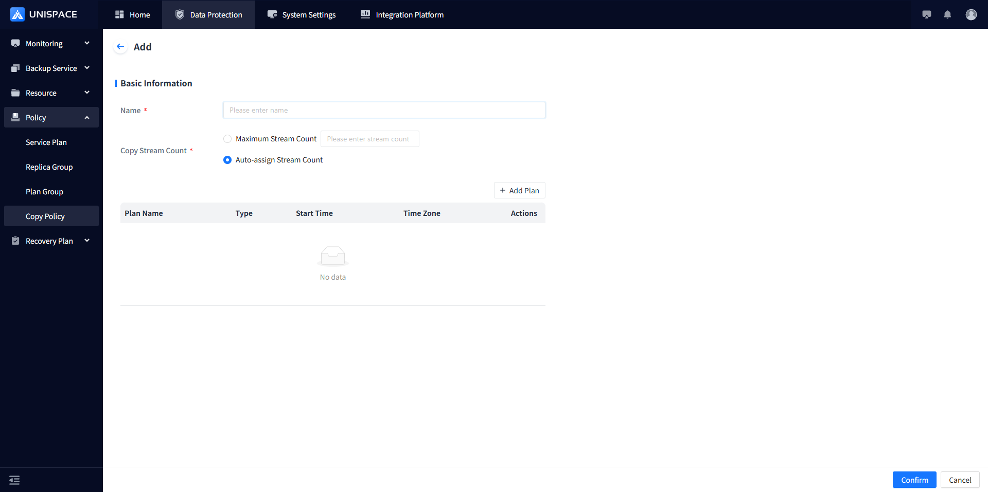 | Add Plan | Configure a periodic schedule for executing copy jobs | One-time or periodic, configured to trigger at start time |