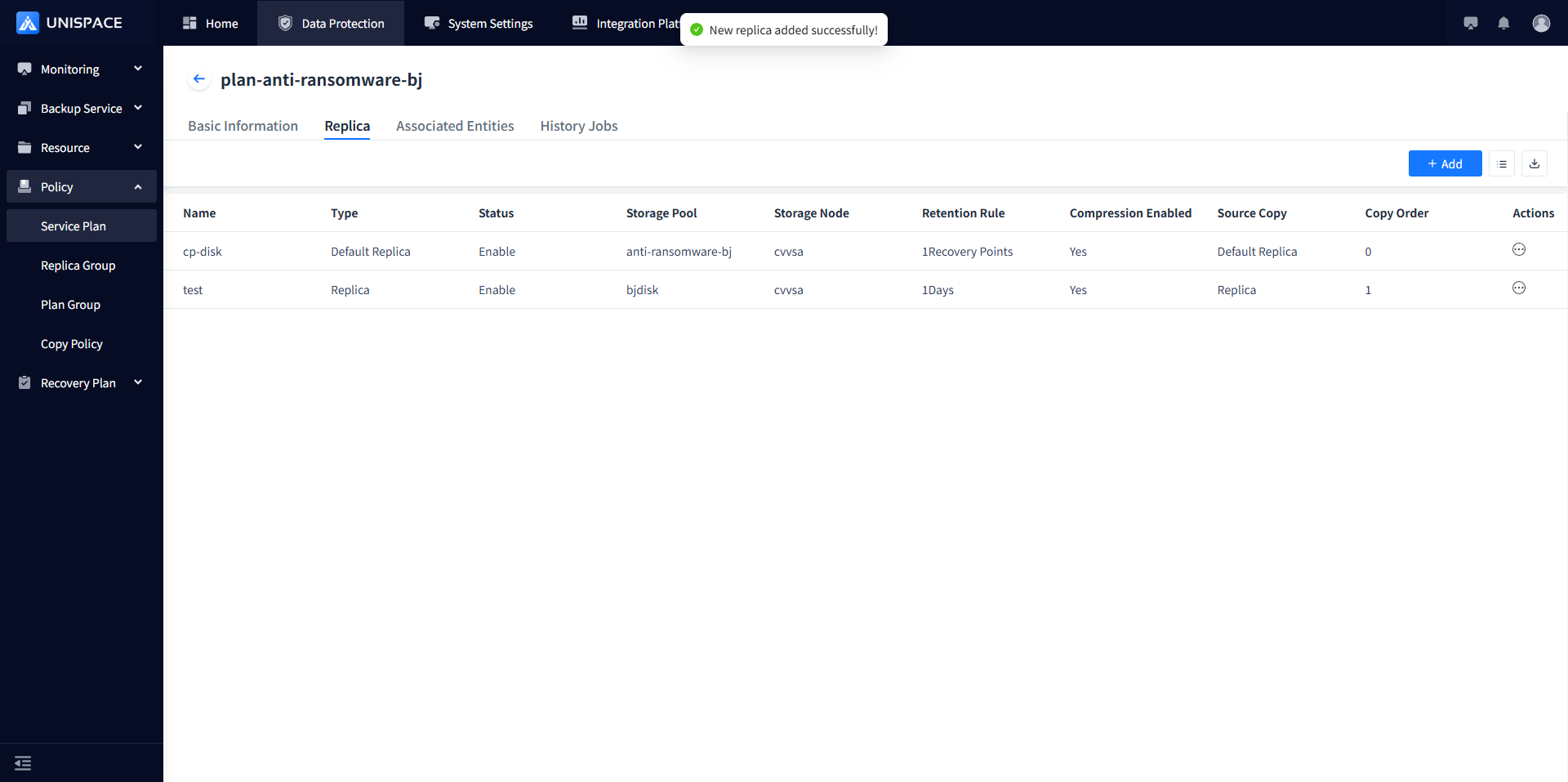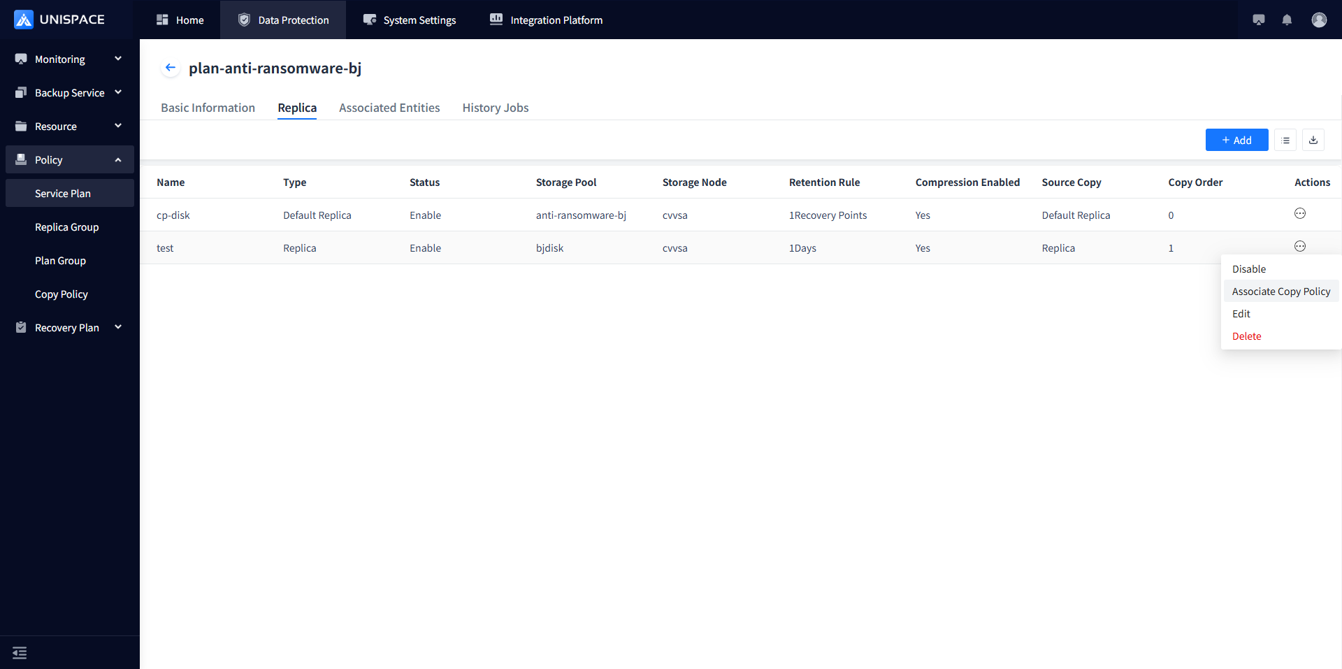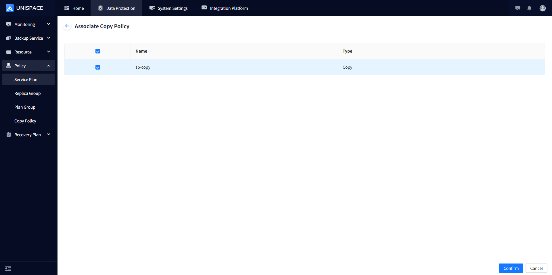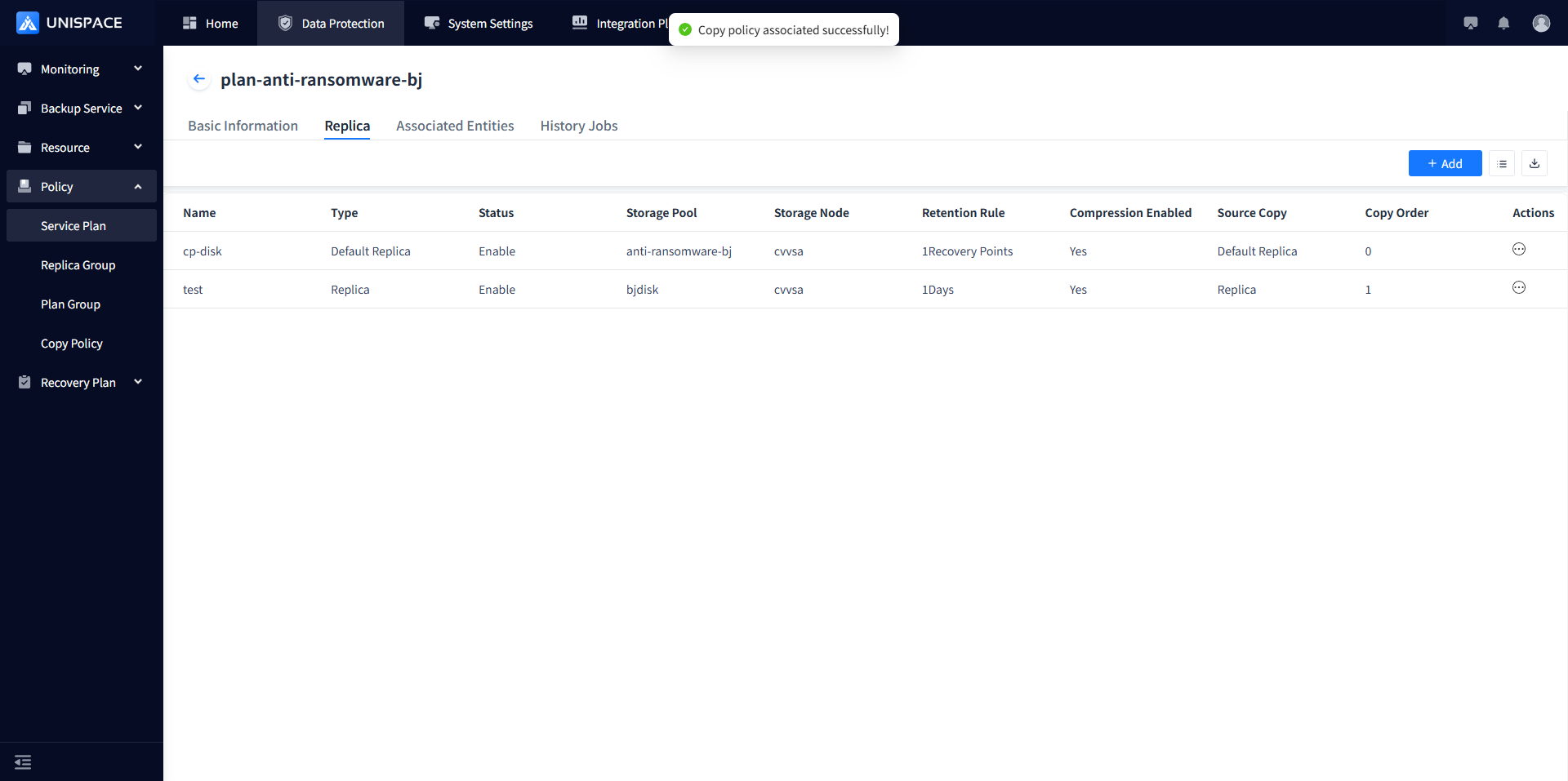 Step 3 Select the corresponding replication policy and click OK. A message will appear: "Copy policy associated successfully!"