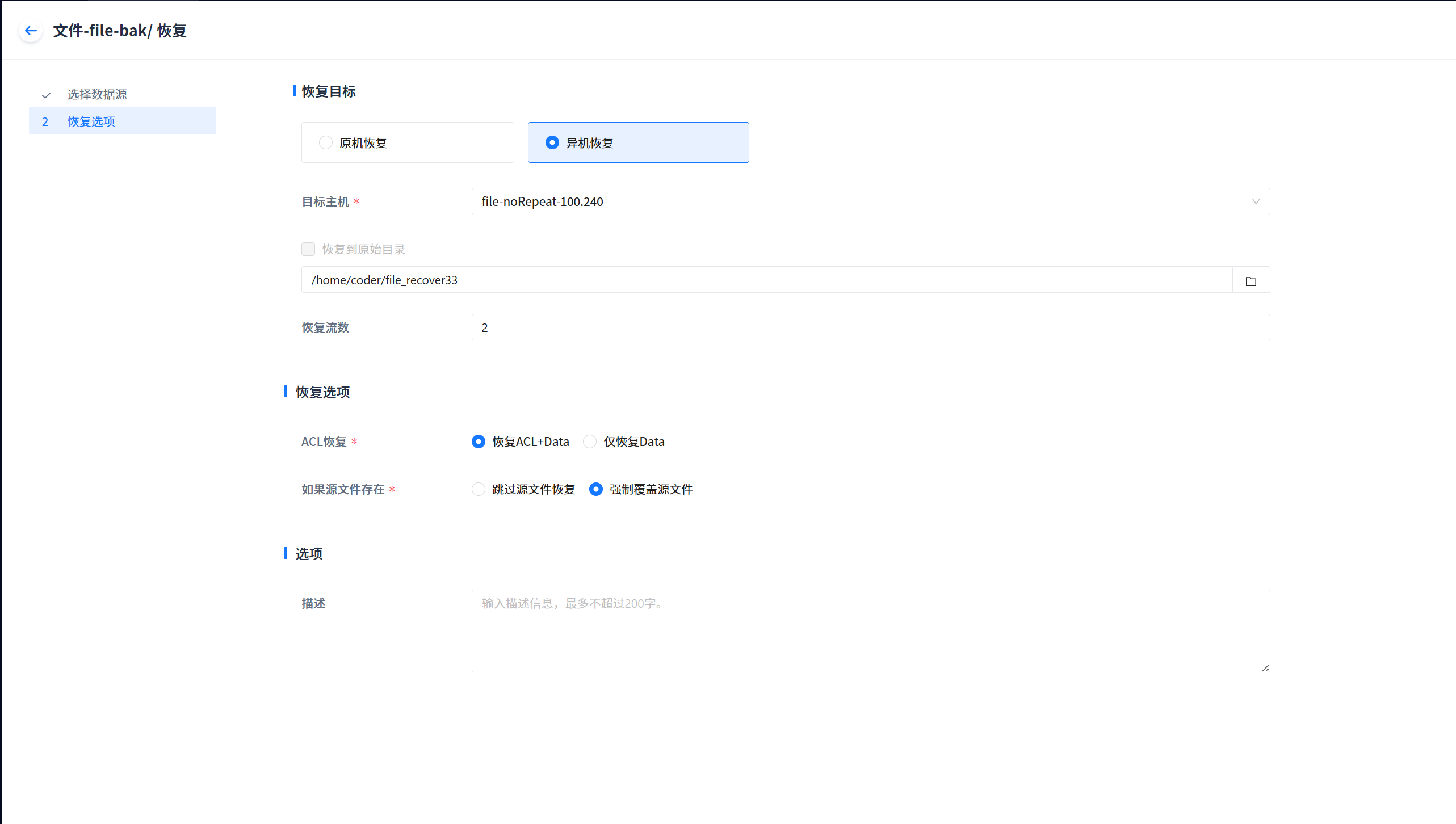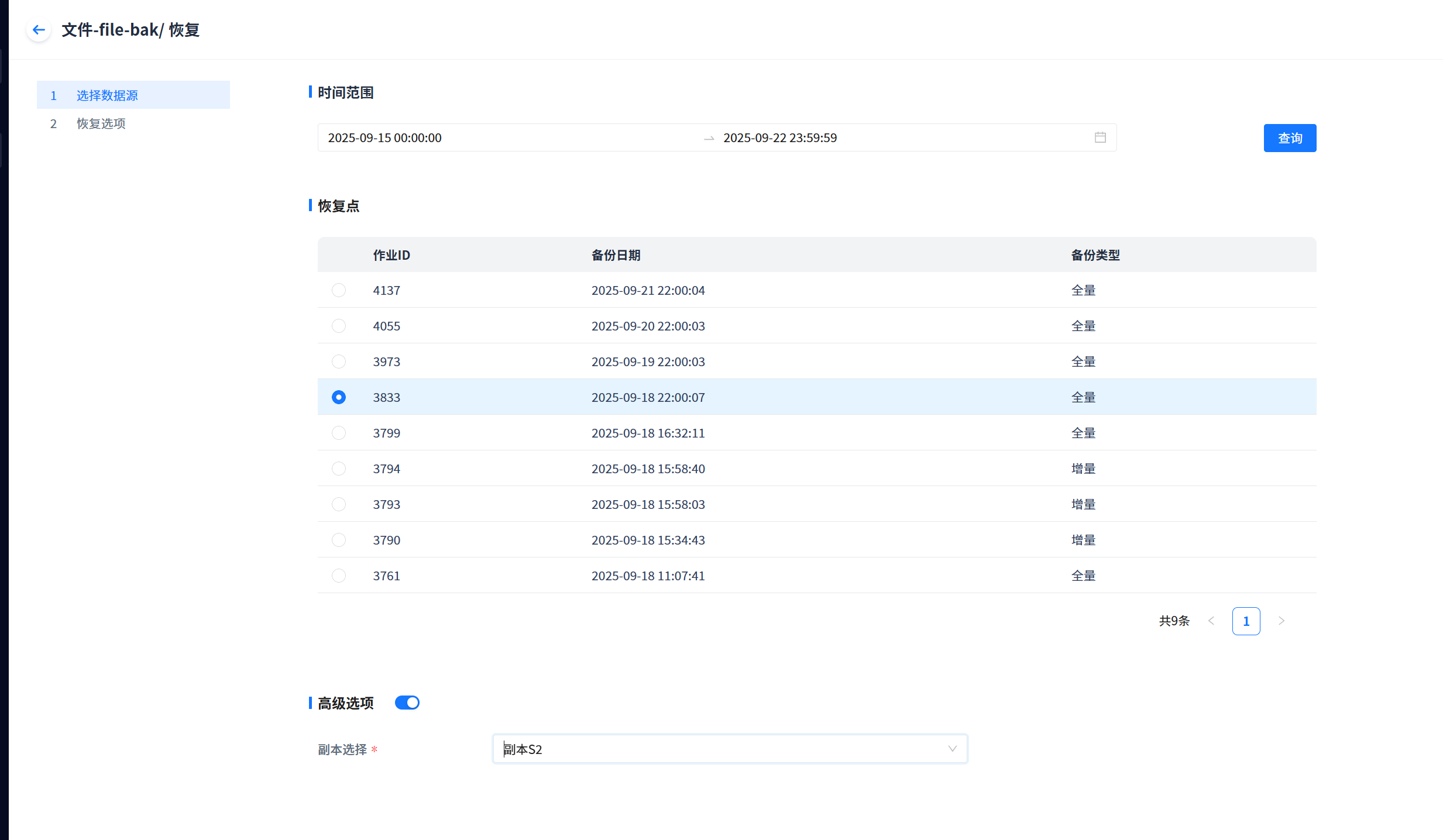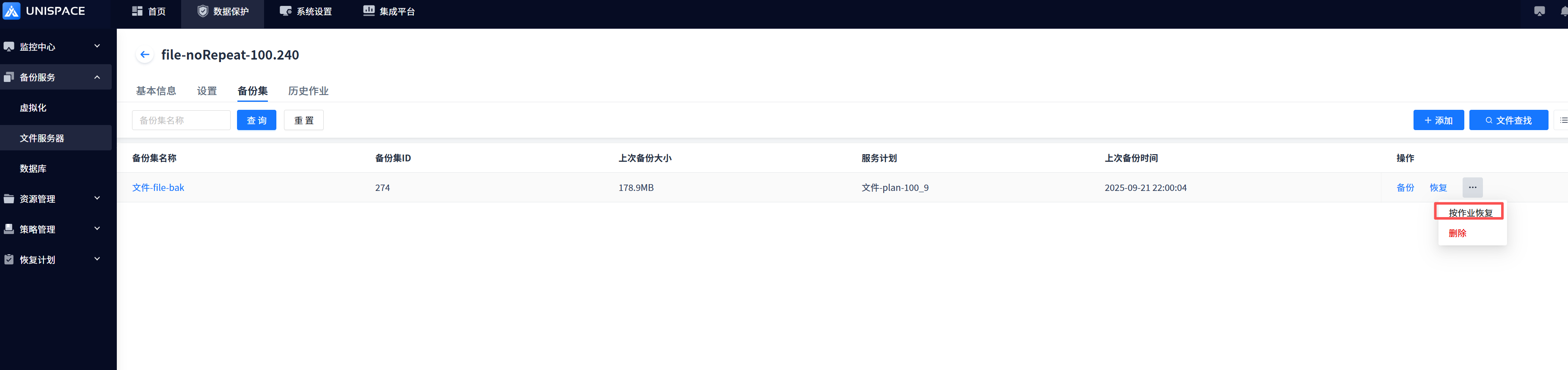 Note: Incremental file recovery based on job can only restore incremental backup files, not all files. This is only supported after version 3.2.