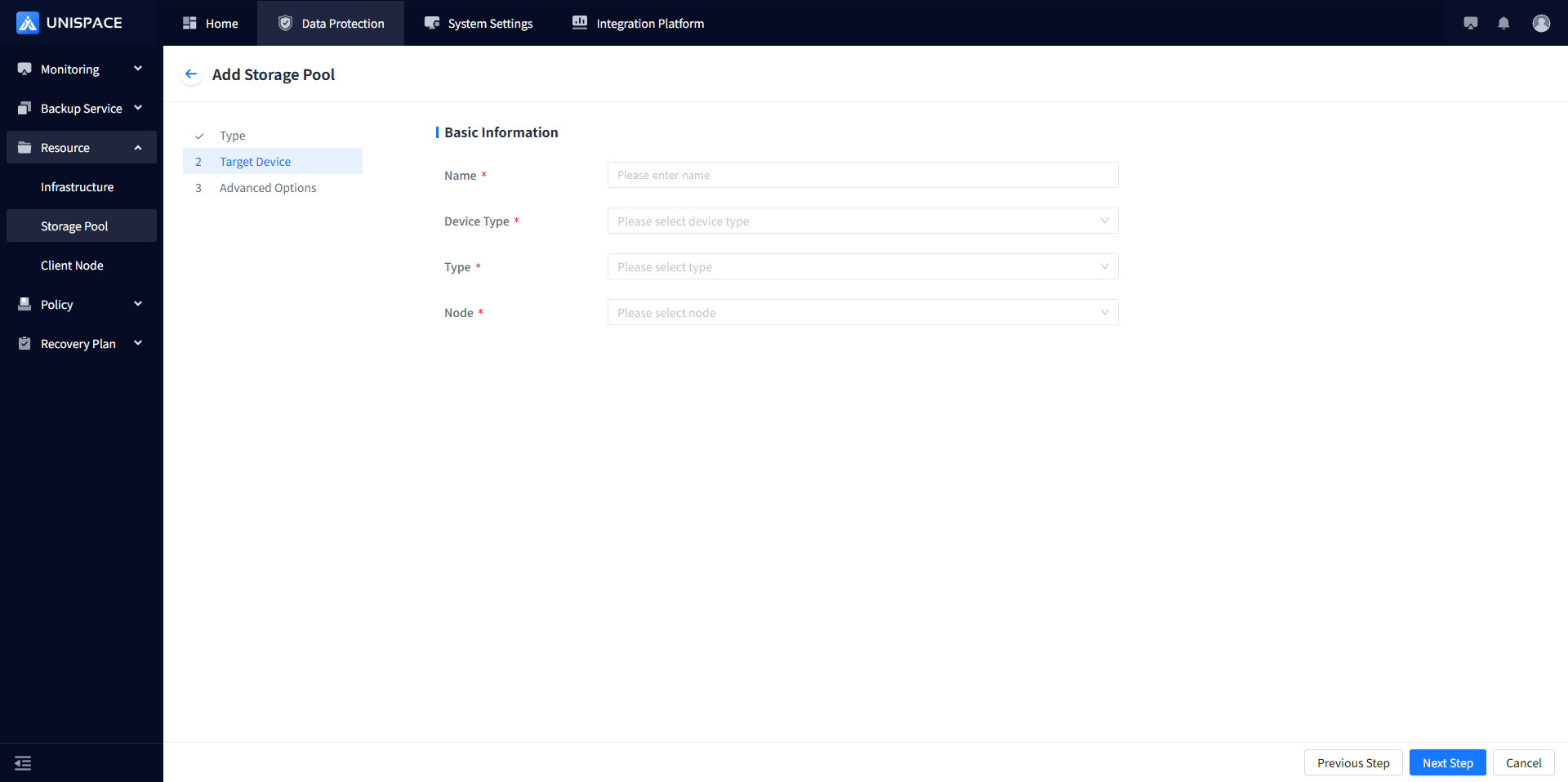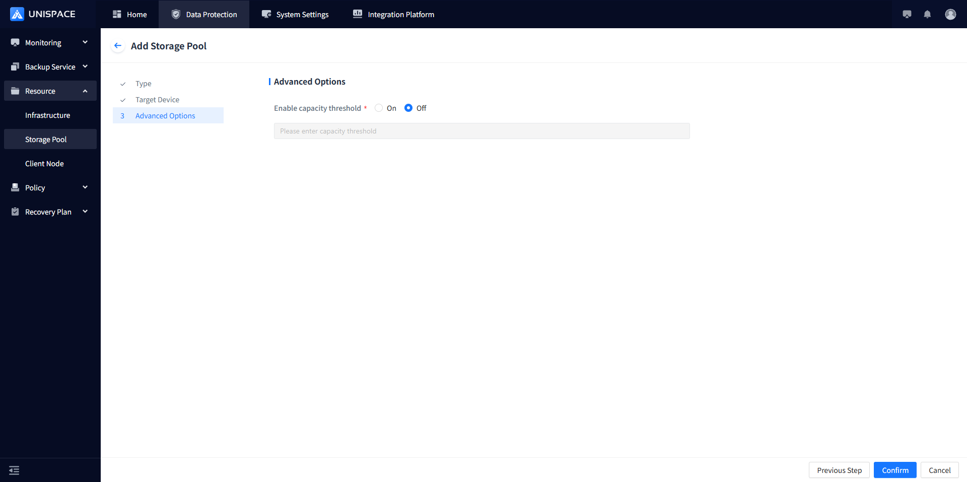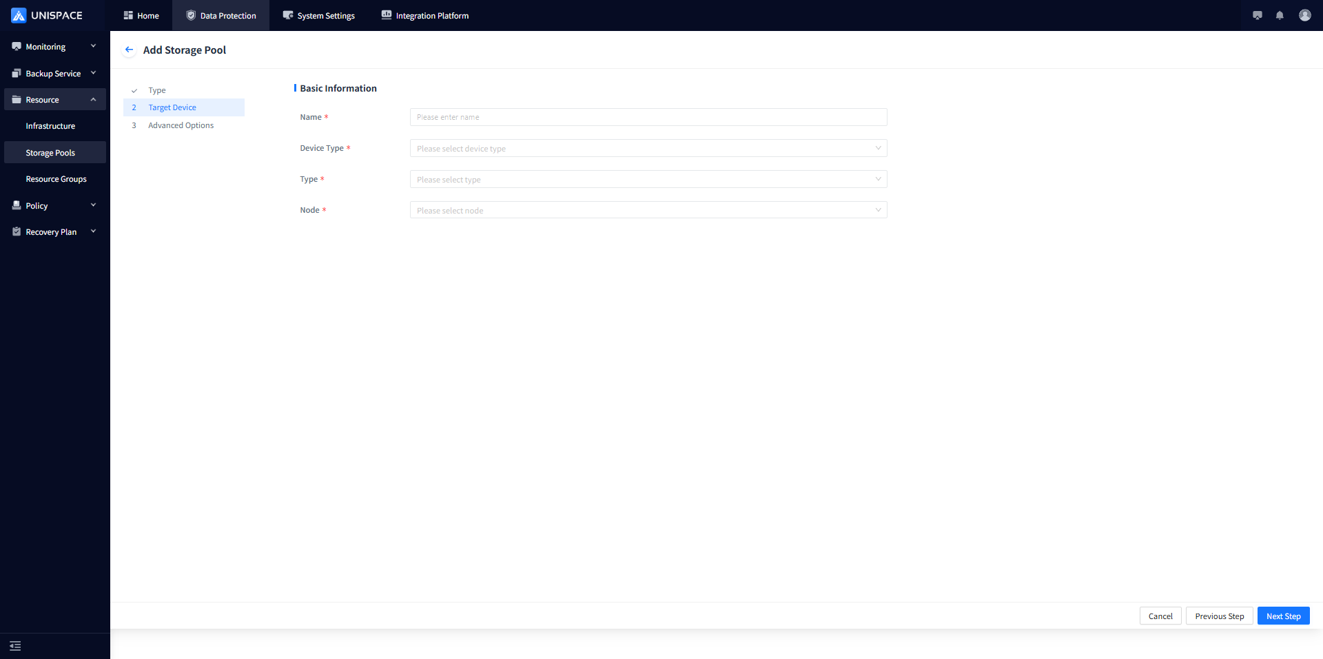 | Storage Pool Name | Required. Users can define it freely. | Maximum input length is 50 characters. |