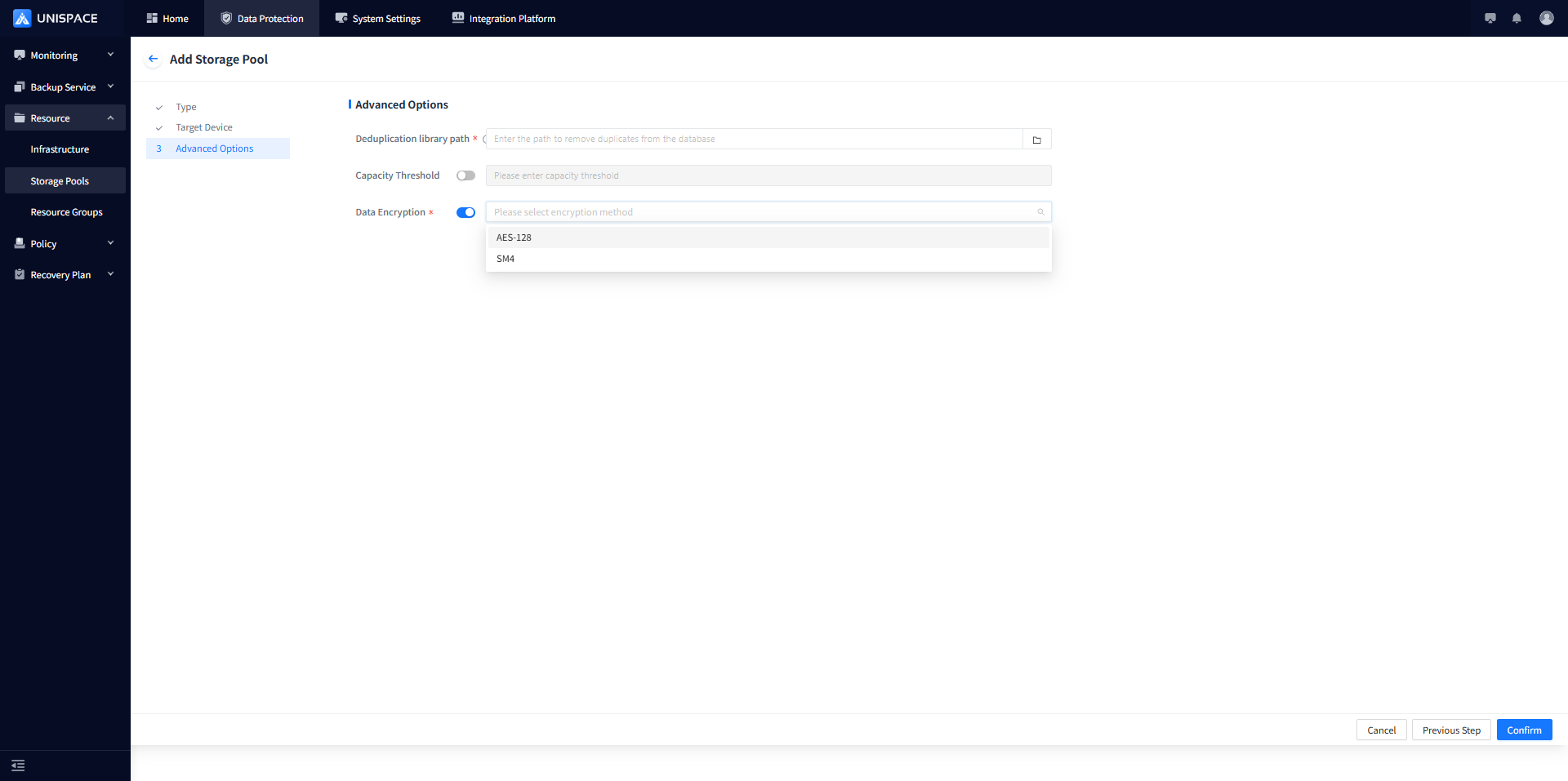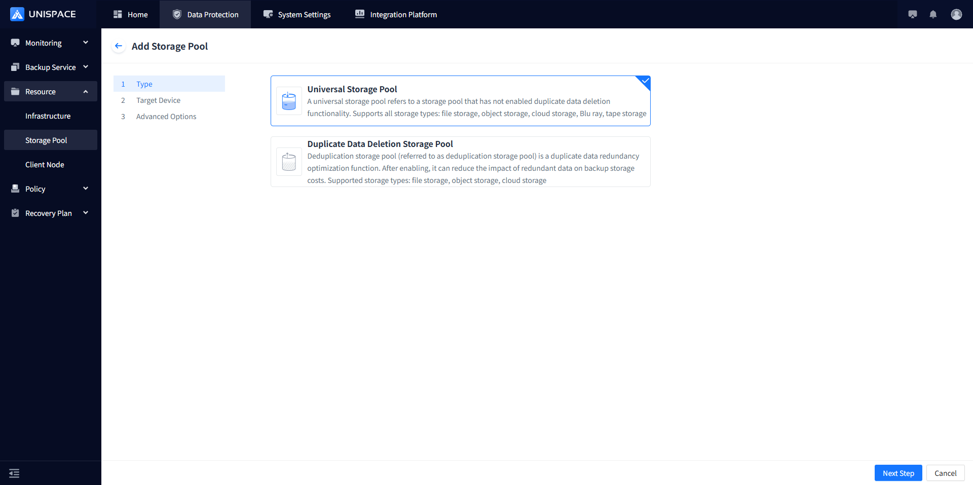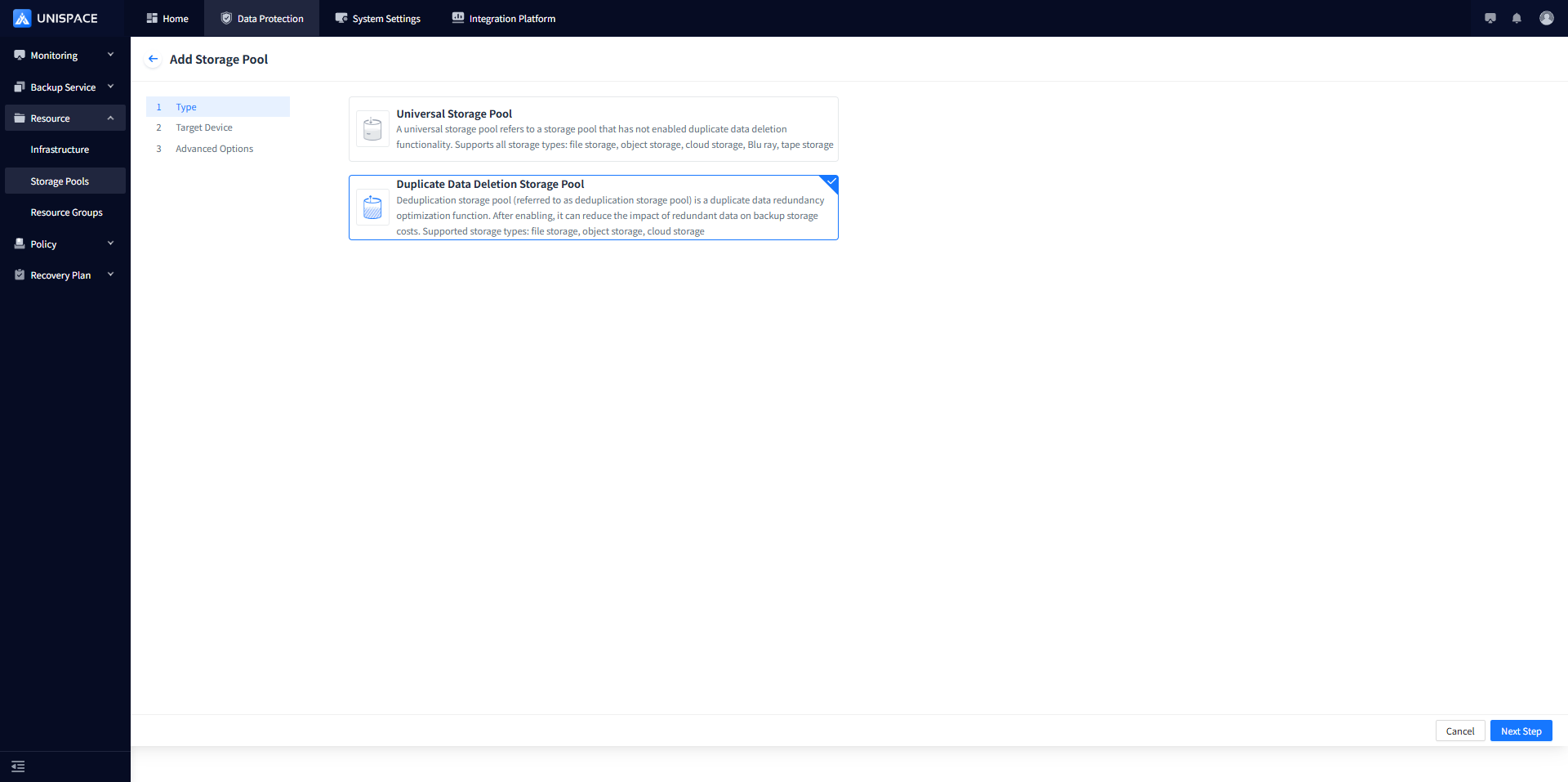 Step 2 Click the Add button at the top right.Click Duplicate Data Deletion Storage Pool. The page will display as follows: