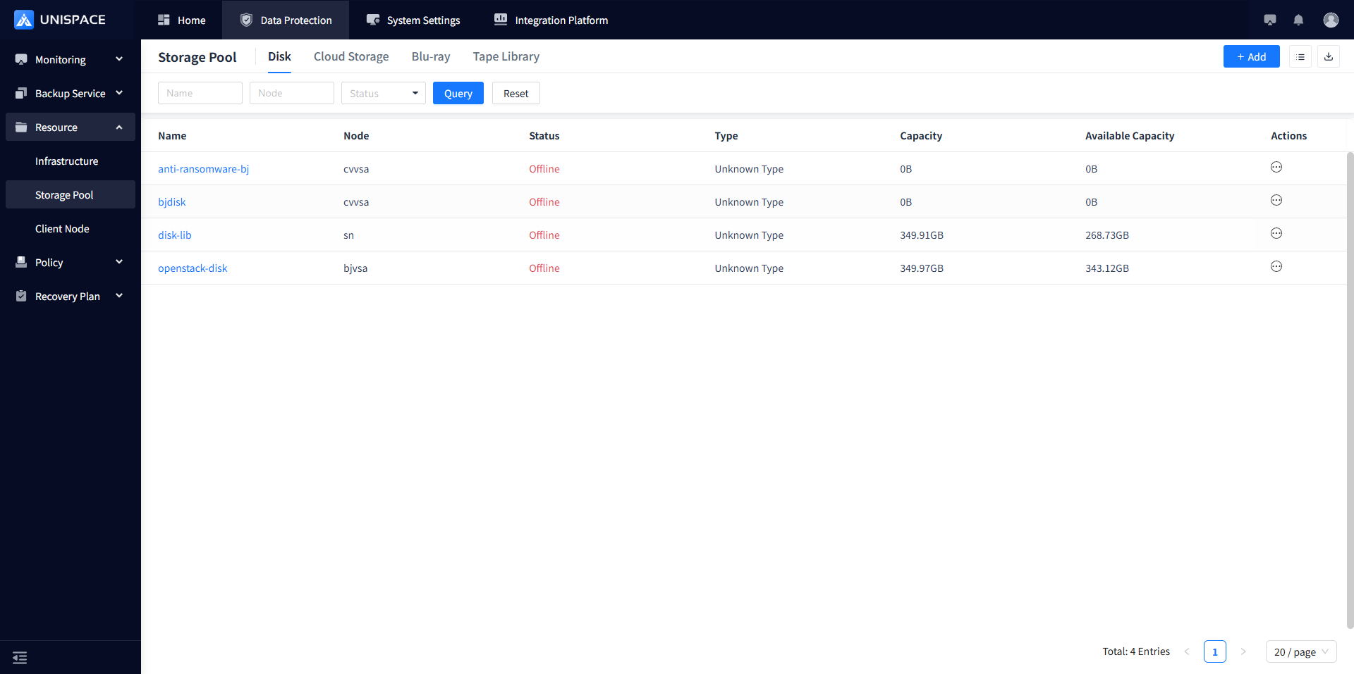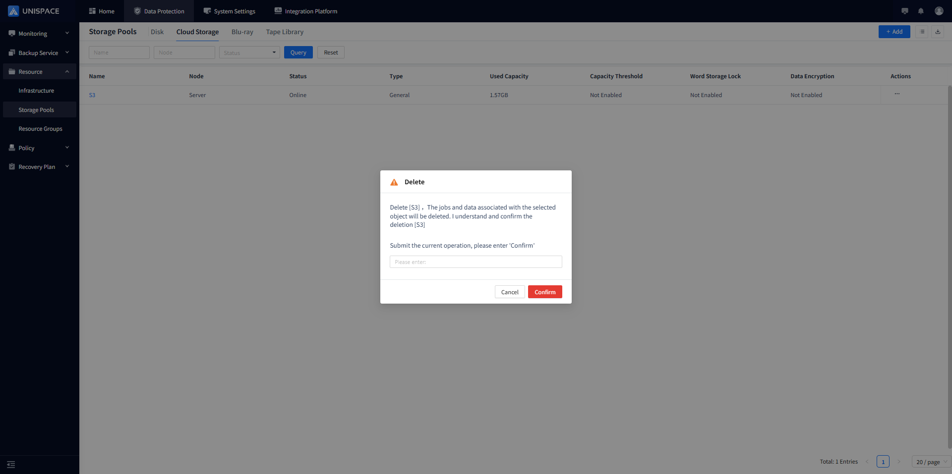 Step 1 Click Resource - Storage Pools on the left side of the system menu.