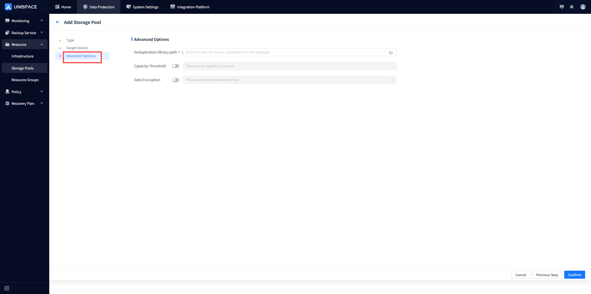Step 1 Click Resource - Storage Pools on the left side of the system menu.Click the Add button at the top right. select Advanced Options.