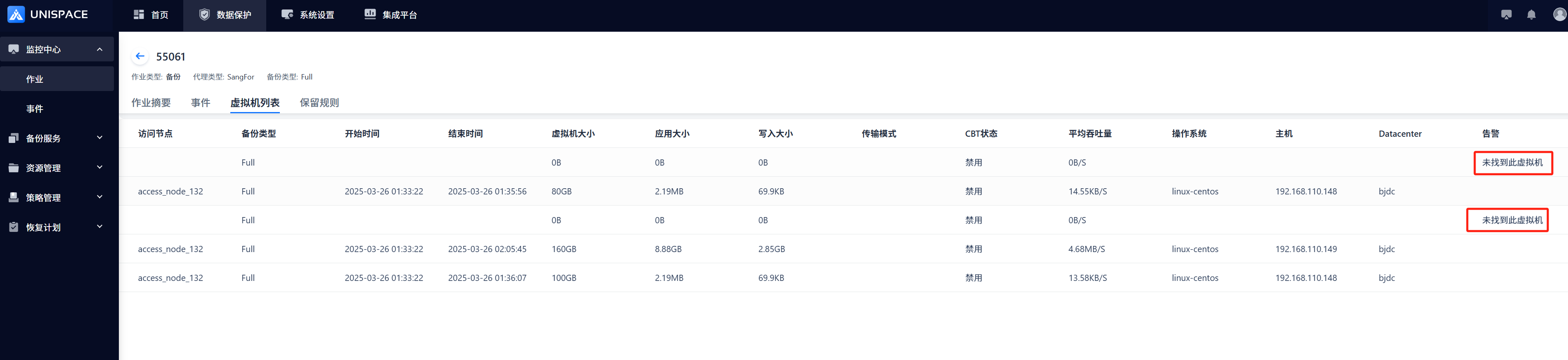 3 If no event notification is found in the above steps, query the event_log on the management server using the job ID. The default directory is /opt/unispace/log/event_logs. Locate the log file for the corresponding date and match the job ID as follows: